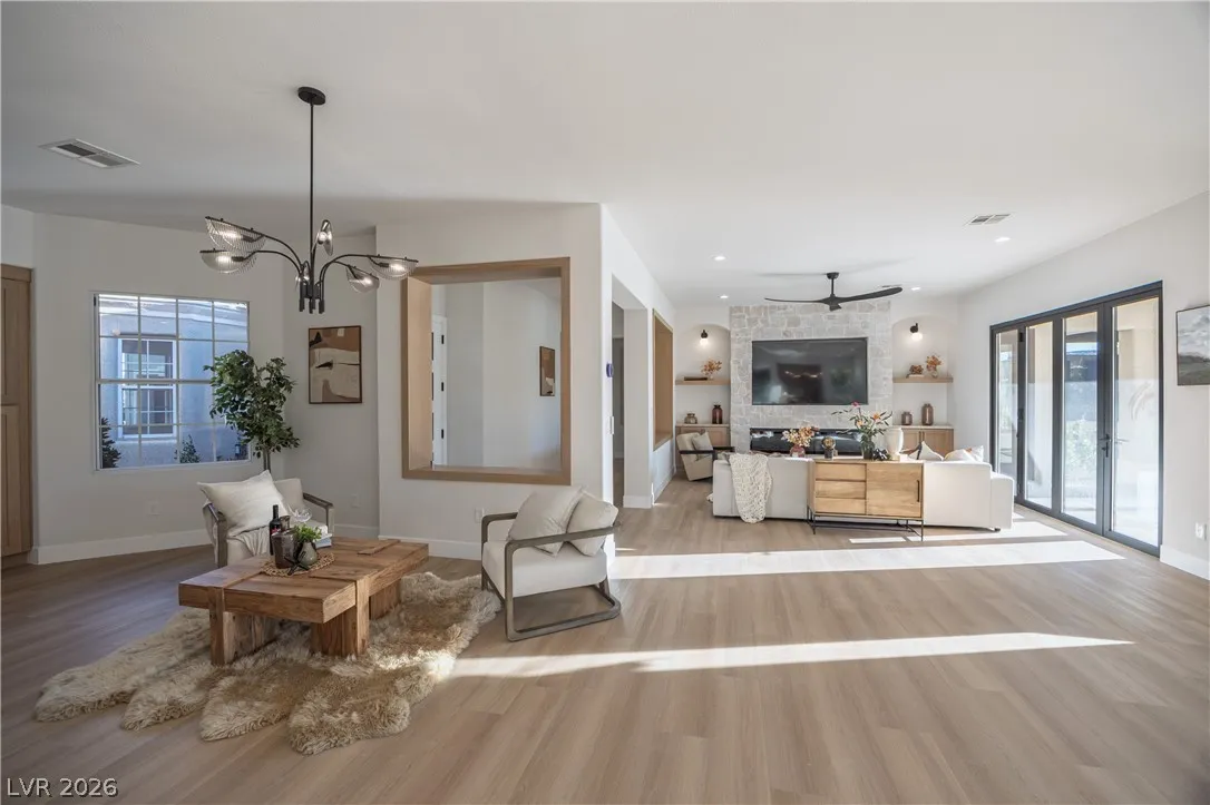 COMING SOON !! THIS HOME HAS BEEN BEAUTIFULLY REIMAGINED WITH TOP-QUALITY FIXTURES AND FINISHES, INCLUDING BUT NOT LIMITED TO BRAND-NEW ENGINEERED HARDWOOD FLOORS, NEW WHITE OAK CABINETS, AND TAJ MAHAL QUARTZITE COUNTERTOPS THROUGHOUT. THIS HOME WILL TRULY TAKE YOUR BREATH AWAY. THE ATTENTION TO DETAIL IS EXTRAORDINARY. UNIQUELY SITUATED ON A .26 ACRE LOT WITH OPEN VIEWS OF THE GREEN GRASS GOLF COURSE AND BEAUTIFUL MOUNTAIN PEAKS, THIS IS ONE OF — IF NOT THE BEST — LOTS IN 55+ SIENA. WITH EVERY INCH OF THE HOME UPDATED TO PERFECTION, THIS RESIDENCE WILL LEAVE YOU WANTING FOR NOTHING. STEP OUTSIDE TO THE COMPLETELY REIMAGINED BACKYARD OASIS WITH A BRAND-NEW POOL/SPA, AN OVERSIZED COVERED PATIO, AND A BRAND-NEW BUILT-IN BBQ/LOUNGE AREA. ENJOY THE QUINTESSENTIAL INDOOR/OUTDOOR LUXURY LIFESTYLE IN THE HEART OF SUMMERLIN.**PLEASE NOTE THAT SOME IMAGES HAVE BEEN VIRTUALLY STAGED OR RENDERED. THIS HOME WILL BE COMPLETED IN THE COMING WEEKS AND IS AVAILABLE TO SEE AT YOUR EARLIEST CONVENIENCE.
