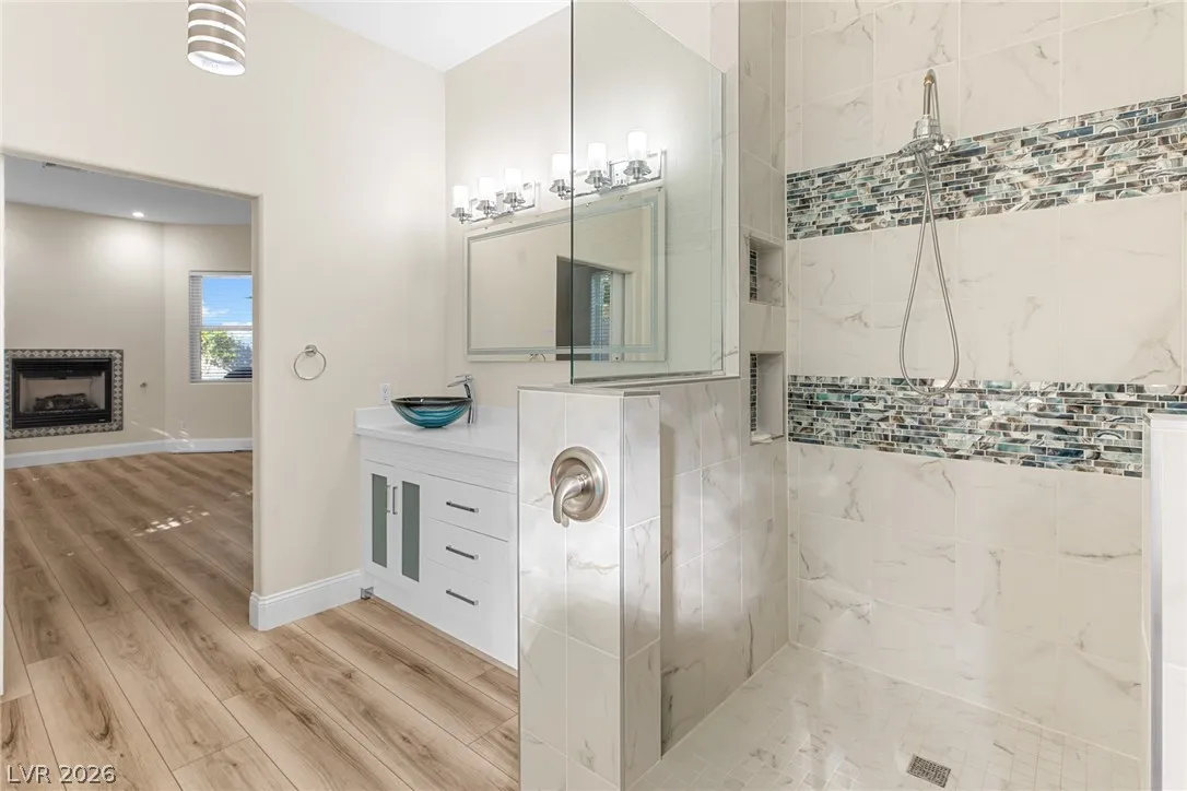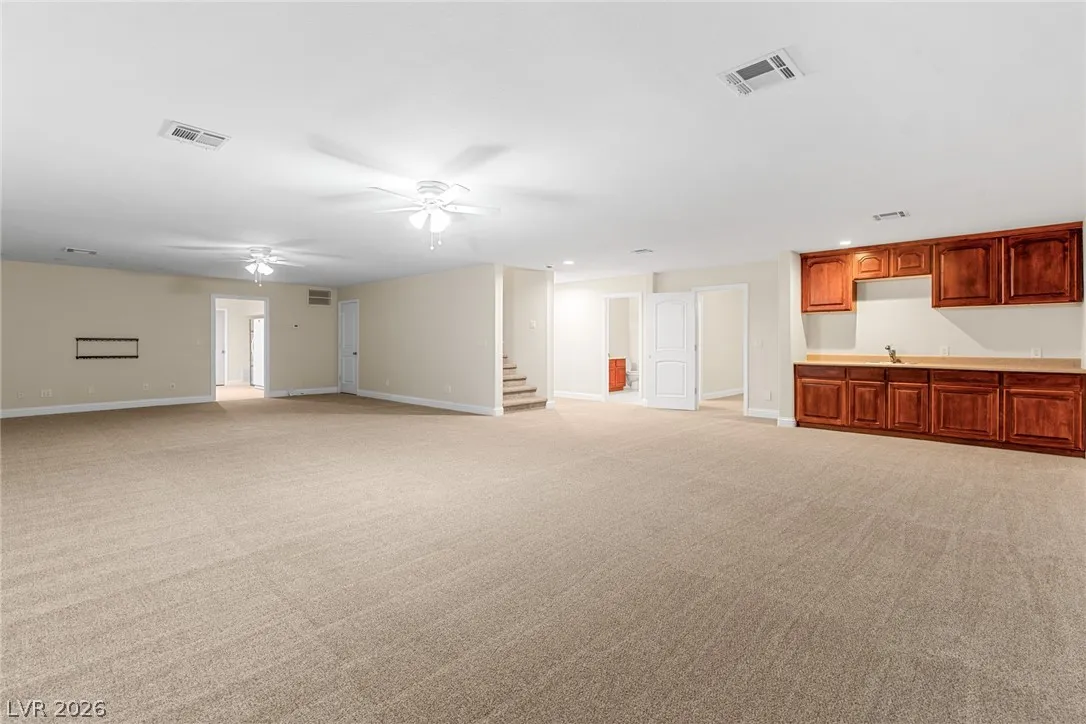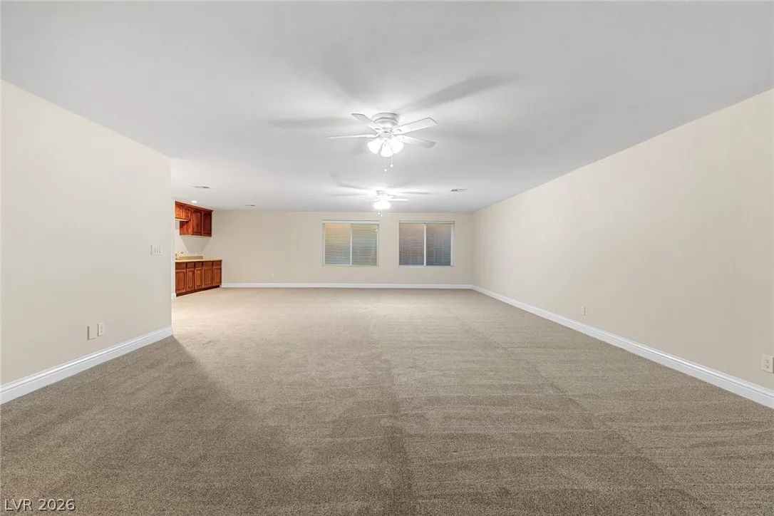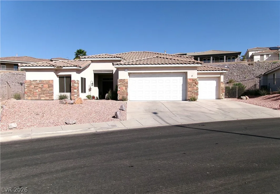 Located in one of Boulder City’s most prestigious semi-custom communities, sitting between two golf courses, this corner lot home offers nearly 6k sq ft and a neighborhood known for mature landscaping and well maintained homes – without the expensive HOA. Garage entry is positioned on the side for curb appeal and the large driveway accommodates boats or RV. Epoxied 3 car garage includes water softener. Vaulted ceilings bring in natural light and crown molding adds detail throughout. Front office includes wood built ins. Very desirable floor plan w a central powder bath, full downstairs primary suite featuring two walk in closets, spa like bath, large walk in shower, and framed LED mirror. Guest bedrooms are upstairs. Remodeled kitchen includes soft close cabinets, double oven, 60 inch SubZero refrigerator, and a banquette with bay windows overlooking the garden area. Laundry room w/ cabinets + sink. Large basement. 3 HVAC units provide independent floor control.