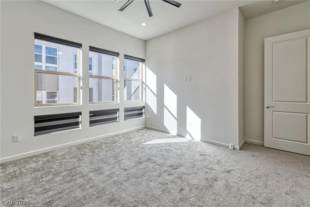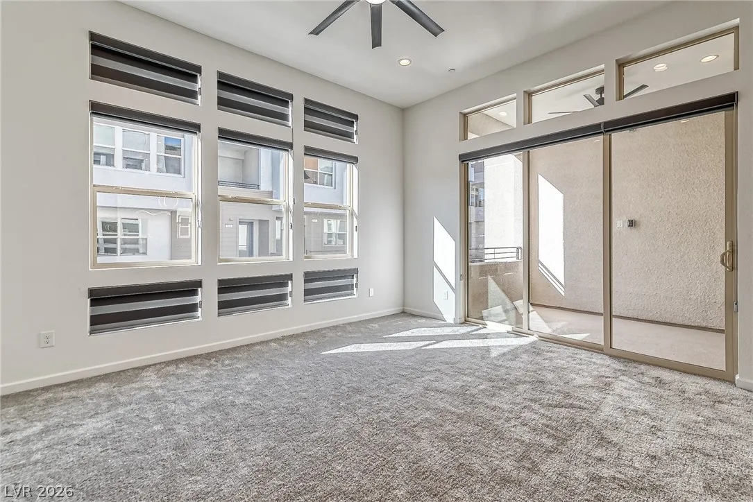 Stunning Toll Brothers Cordillera townhome in the heart of Summerlin! This 4-bedroom, 3.5-bath home offers a modern design with upscale finishes and an open-concept layout. Step inside to find oversized windows that fill the space with natural light. The upgraded kitchen boasts granite countertops, a large island, a breakfast bar, stainless steel appliances, and a walk-in pantry—perfect for any home chef. The oversized sliding glass door leads to a spacious patio, creating a seamless indoor-outdoor flow. Relax in the luxurious primary suite featuring a spa-like ensuite bath. Each bedroom is well-appointed with ample storage and ceiling fans throughout for year-round comfort. The attached garage includes an EV charger, adding modern convenience. Enjoy resort-style living with access to the community pool and all the amenities that Summerlin has to offer—parks, trails, shopping, and dining just minutes away.