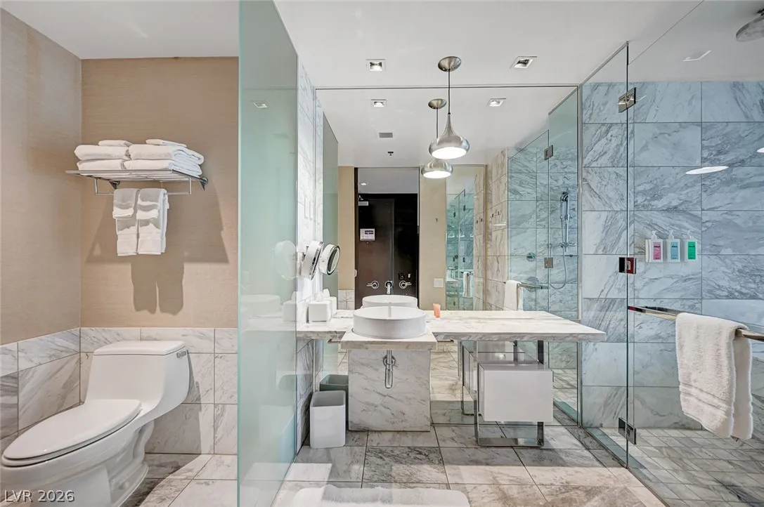 Stunning corner unit located on the 35th floor. Enjoy views from your private terrace or relax inside where floor-to-ceiling windows create your own unique skyline backdrop.Enjoy an open floor plan, flooded with natural light,and modern aesthetics. Complete with high end finishes such as, wood flooring and a beautiful finished granite bathroom including jet tub and walk-in shower. Palms Place offers a unique blend of comfort, convenience, and vibrant community life. Situated just off the Las Vegas Strip, this high-rise community provides the perfect balance of excitement while maintaining a more relaxed atmosphere. Owner perks include a dedicated concierge team, access to pool cabanas, on-site restaurants, spa discounts and complimentary valet.Security is on site.Currently in the in-house rental program. Low maintenance, on-site managed, investment, that you can also enjoy. No black-out dates for owners. Opt out to enjoy the home all to yourself.