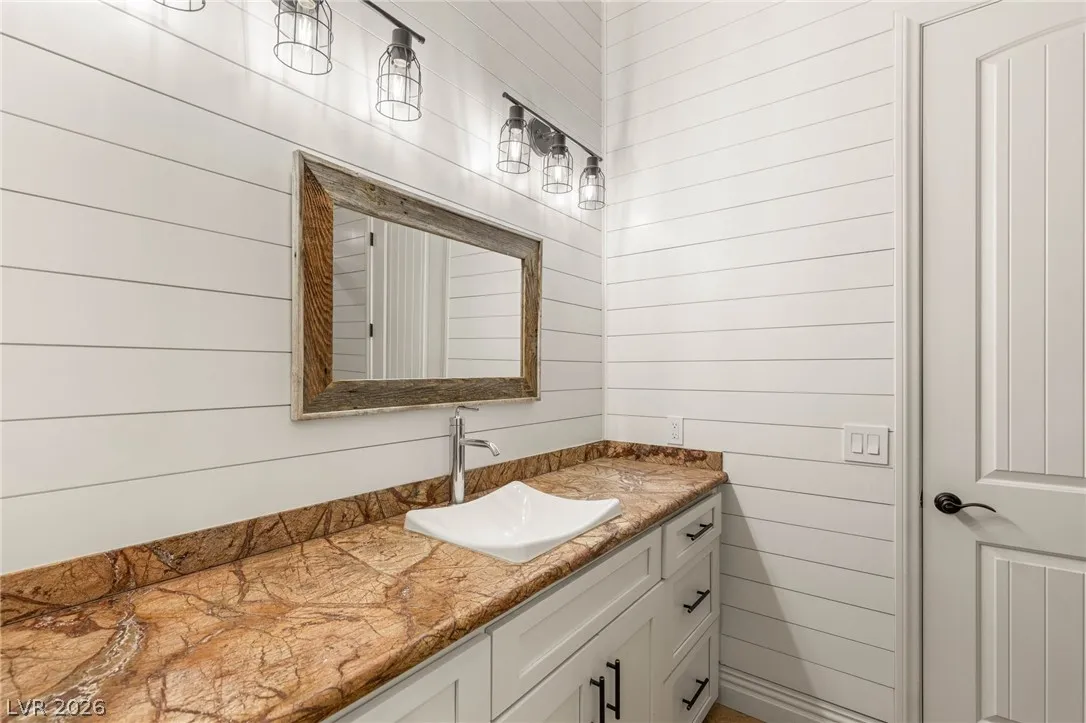 Private gated estate on nearly one acre in Paradise Hills. No HOA. This custom home features a dedicated office, theater room, and oversized loft across two stories of open living. The chef’s kitchen is built around Sub-Zero refrigeration, a gas range, warming drawer, and a two-inch John Boos butcher block island. Pocketing glass doors open to a resort backyard with heated pool, elevated spa, expansive wet deck, and a full-size pickleball and basketball court surrounded by synthetic turf. An attached 3-car garage and detached 1,596 sq ft RV garage with full hookups handle everything from daily drivers to boats and trailers. Dual fireplaces, plantation shutters, paid-off solar, and an outdoor bath and shower round out the details. No HOA means no restrictions on vehicles, parking, or how you use your property. This is the kind of space, privacy, and freedom that doesn’t come up often in Henderson.