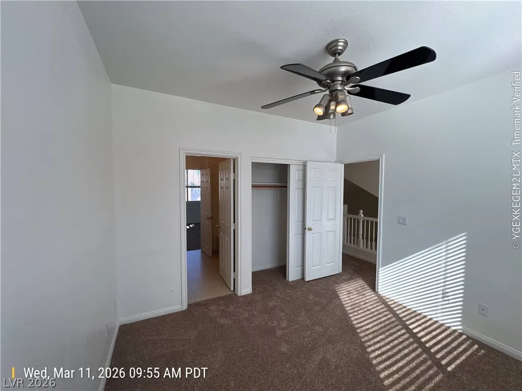 Two story home in the southwest gated Las Vegas Lamplight Cottages community. Spacious open living room with a cathedral ceiling that leads to the kitchen, featuring granite tile counters, all appliances, a closet pantry & a breakfast counter. There is a sliding door leading to a back yard patio. The downstairs has a bedroom and a full bathroom. Laundry closet with a washer & dryer included upstairs. There are two bedrooms upstairs that share a Jack & Jill bathroom. The bathroom has 2 sinks & a combo tub / shower. All of the bedrooms have ceiling fans. The house has a two car garage with an automatic door The property has a rock landscape that is easy to care for. The community is gated and has a basketball 1/2 court, clubhouse, pool, spa and a picnic area. $1775 RENT + $20 TRASH + $31 SEWER = $1826/MONTH
