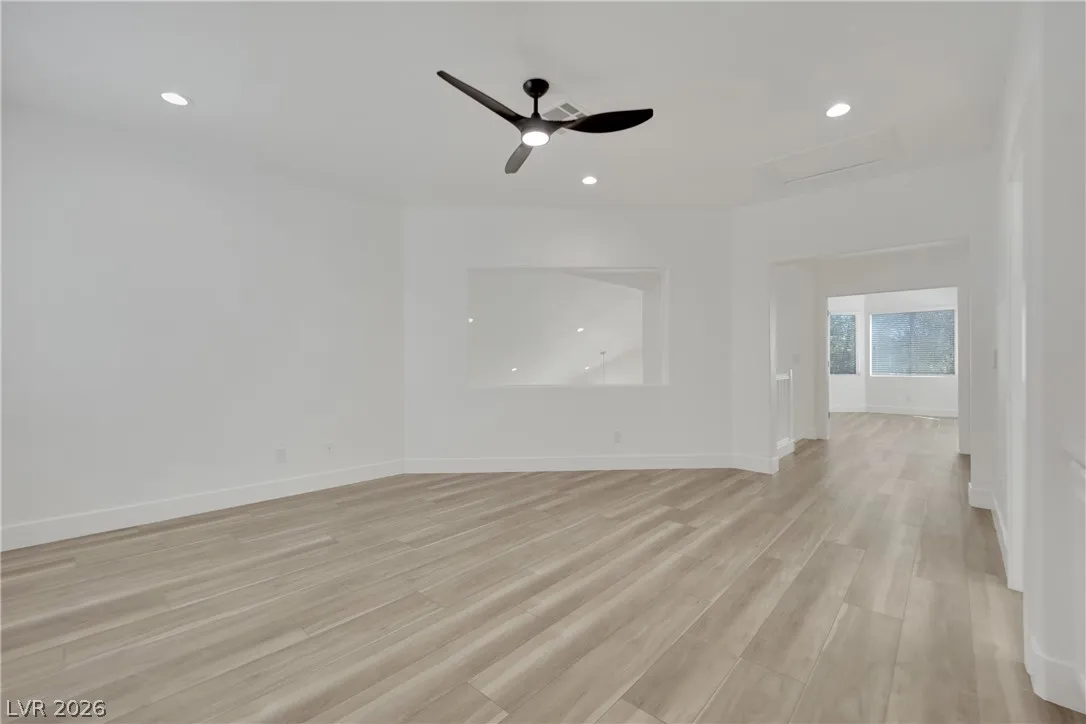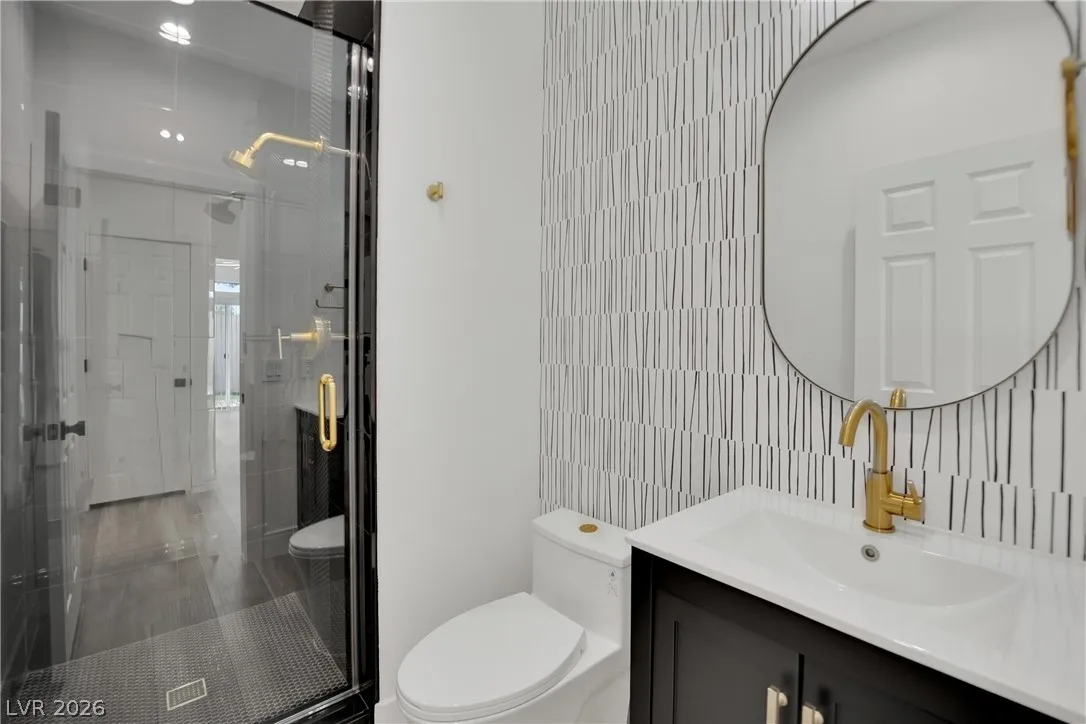 Fully remodeled 4-bedroom home in Summerlin. This modern home includes rare features such as a Bedroom Downstairs, along with an upstairs guest bedroom with an attached bathroom. The kitchen showcases custom cabinets, quartz countertops, a center island, stainless steel appliances and recessed lighting. Luxury vinyl plank flooring and upgraded lighting fixtures flow through the living spaces, which include a family room with an electric fireplace and an upstairs loft with recessed lighting, ceiling fan and built-in cabinets. The primary suite offers dual vanities, a separate tub and shower, and a spacious walk-in closet with custom shelving. Practical touches include ceiling fans throughout, a first-floor laundry room with sink and cabinets, and an included washer and dryer. The backyard is upgraded with turf and desert landscaping. Nearby schools add convenience for daily routines. As an extra added perk, Trash, Sewer and Tenant Portal Fee are included in rent!