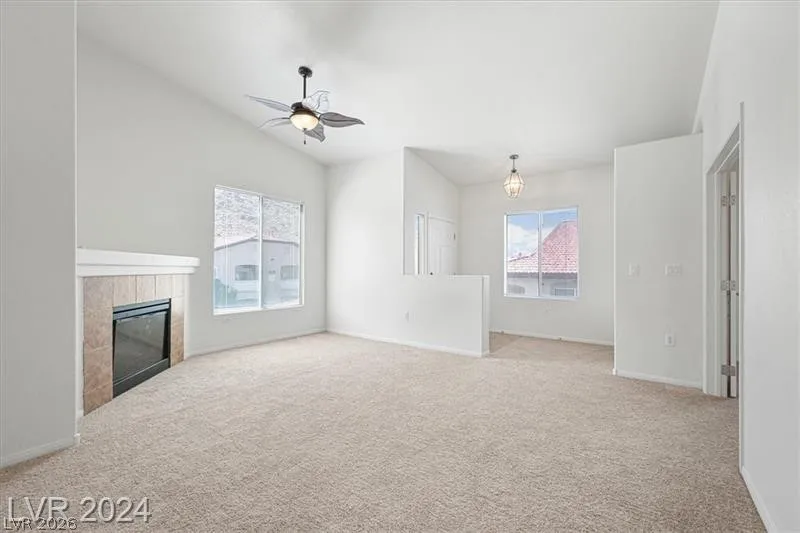 Stunning upstairs Lone Mountain condo has great community amenities such as a fitness center, community pool and spa all within a gated community. This property has vaulted ceiling throughout. Living room has a cozy fireplace and upgraded ceiling fan. Dining room has access to the balcony with the spectacular Mountain View. That mountain provides adequate shade at that right time of day to keep living area cool. Newer Ac unit and water heater.