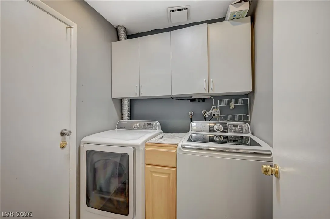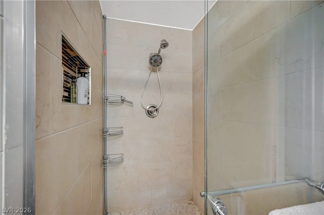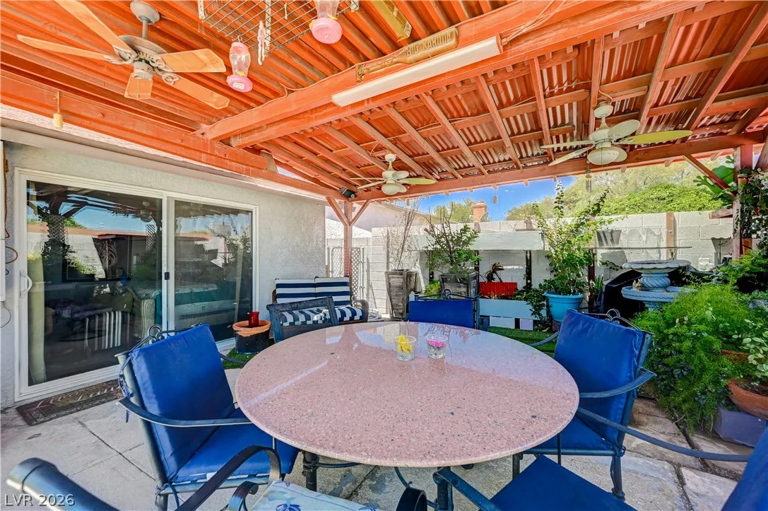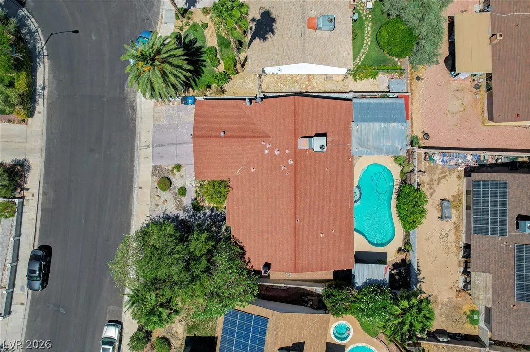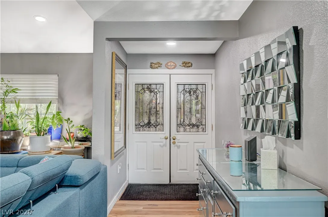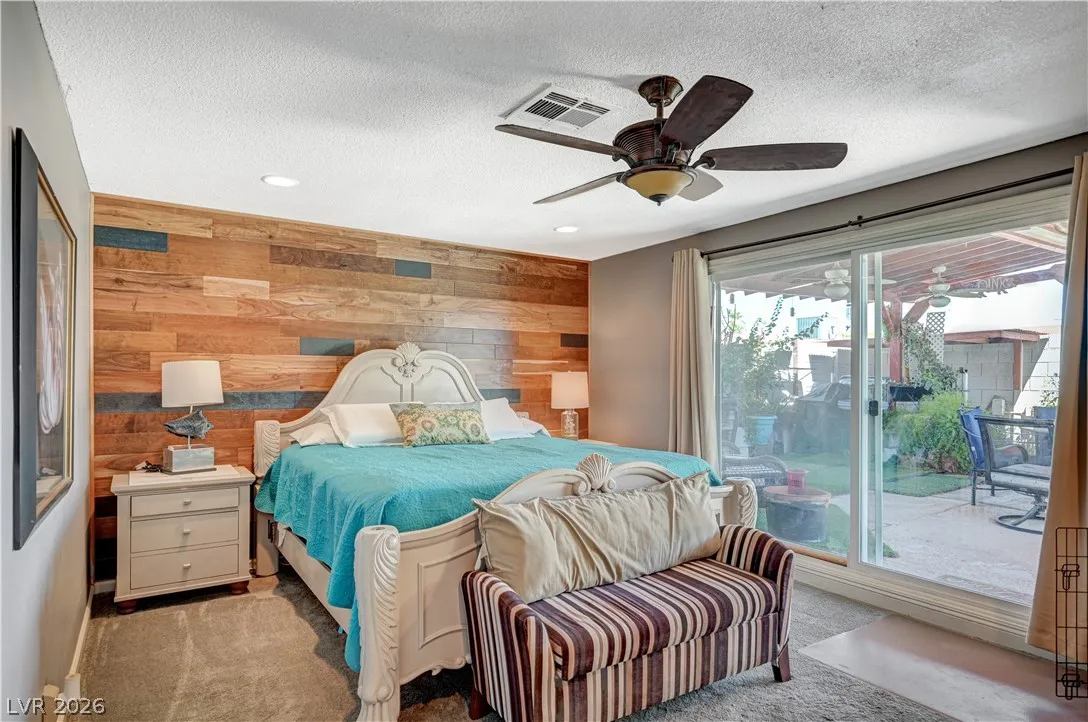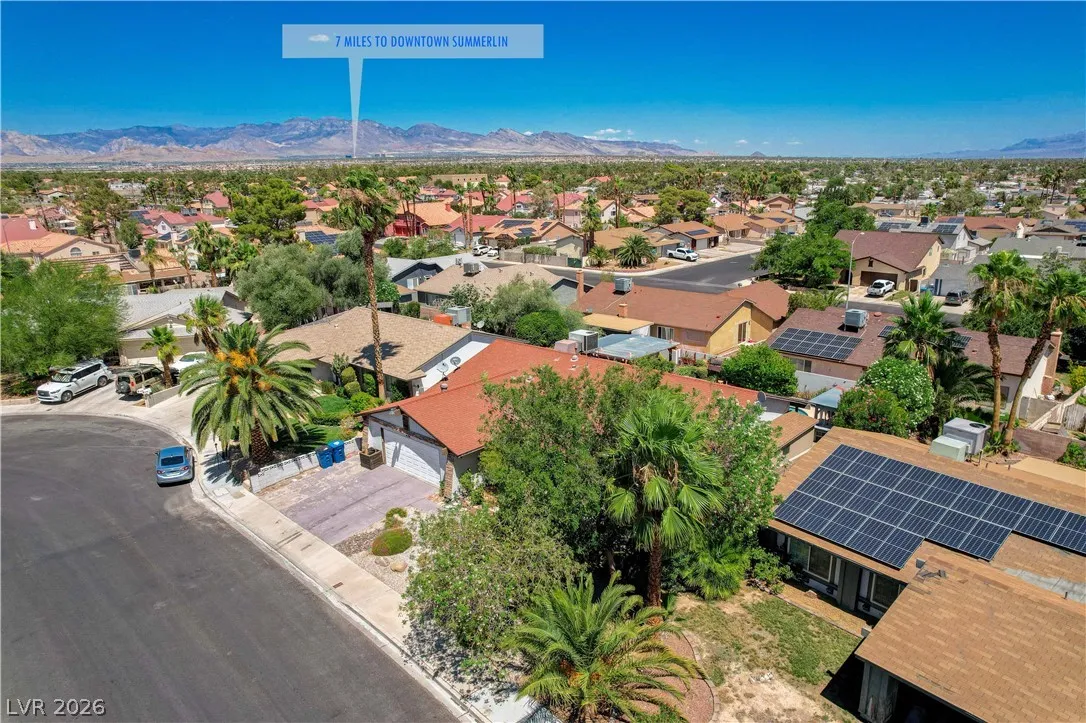 Welcome to your dream home in the heart of Las Vegas! This stunning 4-bed, 2-bath home is nestled in a charming all-single-story neighborhood with NO HOA! Step into a fully remodeled interior featuring NEW luxury vinyl flooring, upgraded carpet in the bedrooms, & elevated baseboards. The open floor plan showcases a 10′ kitchen island adorned with pendant lights, Calacatta quartz, tile back-splash, SS appliances, vent hood, & custom floor to ceiling shaker cabinets! Recessed LED lights illuminate the space, enhancing the modern feel. The spacious family room boasts vaulted ceilings & an electric fireplace with exquisite stonework. Large primary bedroom complete with a stylish shiplap wall, ceiling fan & patio door! Bathrooms have been upgraded with granite counters, designer mirrors, and custom tiled showers. Enjoy the resort-style backyard oasis featuring a pool, spa, and a custom-built covered patio and cabana, all elevated for privacy! AMAZING CURB APPEAL & TRUE PRIDE OF OWNERSHIP!