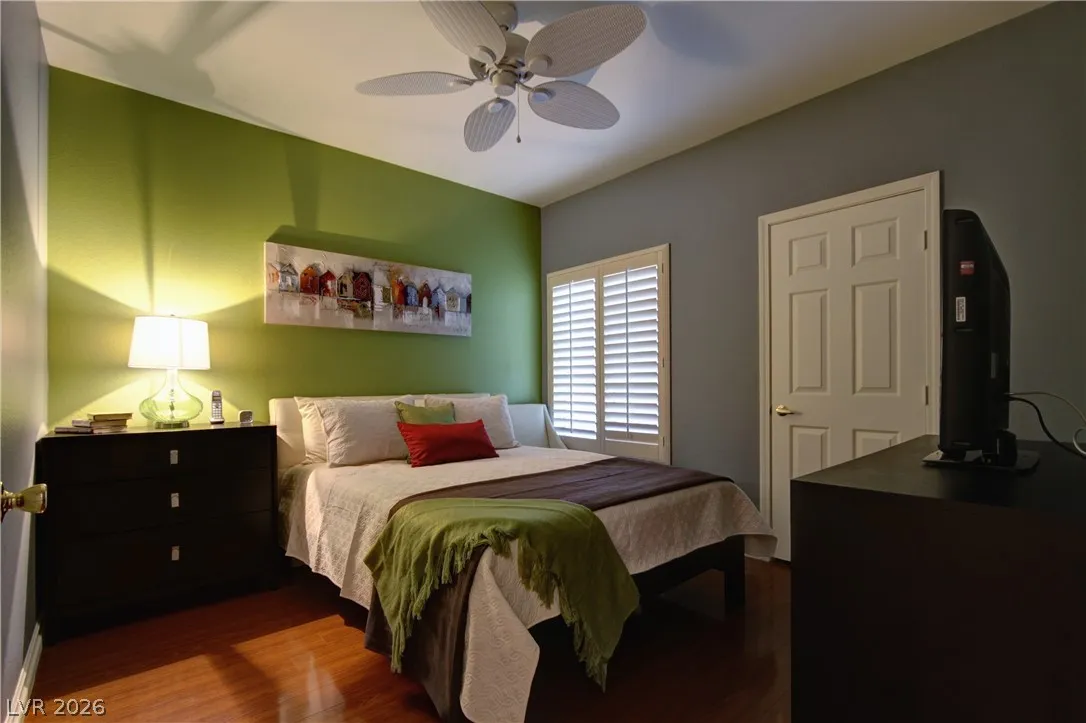 Fully-furnished, upscale, modern 2-bedroom, 2-bathroom condo with a garage located in the highly desirable Summerlin community. This condo is situated in a gated community that offers amenities including a clubhouse, pool, and spa. It features an office space/den with a desk and a sleeper sofa, perfect for working from home. Each room is equipped with ceiling fans, and the interior showcases fun, artistic decor throughout. Enjoy vaulted ceilings, upgraded stainless steel appliances, and granite countertops. The condo has private balcony access, allowing you to enjoy the beautiful Vegas weather. Additionally, there is in-unit laundry for your convenience. With great access to the 215 freeway, you will be near shopping, dining, outdoor activities, and entertainment in Summerlin. This turnkey rental includes internet and a monthly utility allowance, making it perfect for your stay in Vegas.