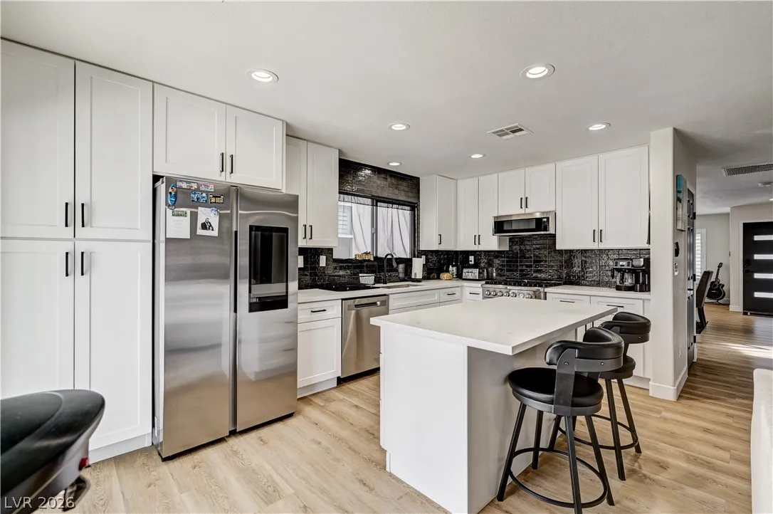Welcome to a home that truly captures the Las Vegas lifestyle. Located in the desirable southwest area of Las Vegas, this beautifully maintained property offers the perfect blend of comfort, style, and relaxation. Step inside to an open and inviting layout filled with natural light and modern upgrades throughout. The kitchen serves as the heart of the home, featuring quartz countertops, stainless steel appliances, and plenty of space to cook, gather, and entertain. Upstairs, the spacious primary suite provides a peaceful retreat at the end of the day, while the additional bedrooms offer flexibility for family, guests, or a home office. The backyard is where this home truly shines. Enjoy your own private oasis with a sparkling heated salt pool, relaxing waterfall feature, and covered patio—perfect for warm summer evenings, weekend BBQs, or simply unwinding after a long day. With convenient access to shopping, dining, parks, and major freeways.