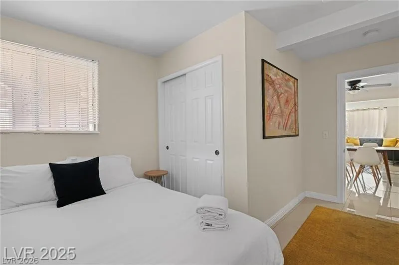 Welcome to this beautifully updated 3-bedroom home in the historic Huntridge neighborhood of Downtown Las Vegas! This corner-lot property features two driveways, potential RV parking, and low-maintenance desert landscaping. Enjoy both a welcoming front patio and a spacious backyard patio perfect for relaxing or entertaining. Inside, modern tile floors flow throughout the home. The updated kitchen offers white quartz countertops, cherry cabinets, stainless steel appliances, a floating hood, and an extended bar with plenty of seating. Located just minutes from the upcoming Huntridge Theater revitalization, the Arts District, Fremont Street, cafes, shops, dining and parks. A rare charming blend of historic character and modern comfort in an unbeatable location! Come tour this AMAZING home.