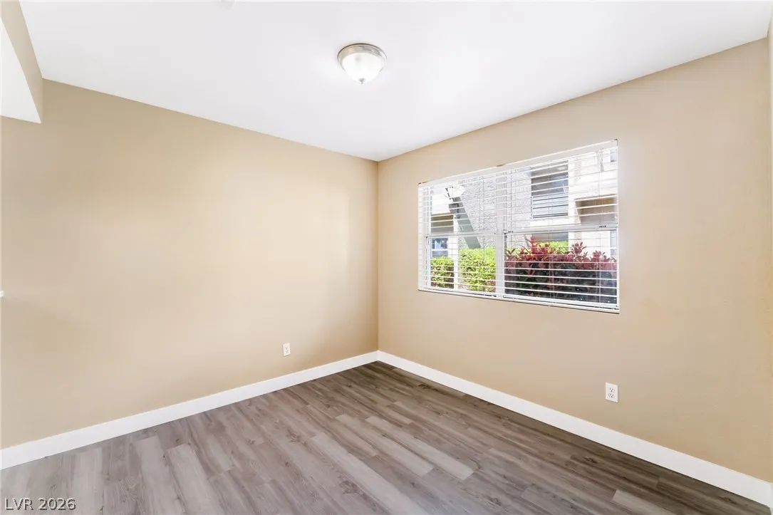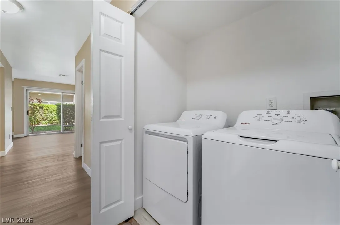Don’t miss this beautifully updated first-floor condo in a very desirable area of Las Vegas. This bright, modern home offers two spacious bedrooms and two upgraded bathrooms, featuring quartz countertops in bathrooms and kitchen, stainless steel appliances and brand new vinyl plank flooring for a clean, contemporary look. The living room opens directly to a beautiful patio and greenbelt area through a large sliding door—perfect for enjoying the outdoors and extending your living space. The second bedroom also features its own covered patio, giving you a private and peaceful outdoor retreat.