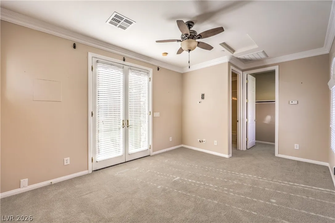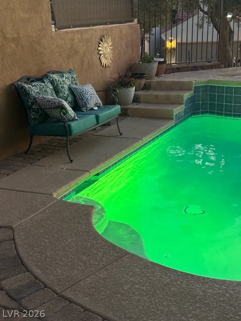 Rarely available custom home in prestigious Lake Las Vegas offering 2,298 sq ft including a private detached casita with full bath. Four bedrooms, 3 1/2 bath total. Elevated lot captures scenic mountain views, gorgeous sunsets and Las Vegas city views from a resort-style backyard featuring a wrap-around saltwater pool, spa, covered patio, and automatic sunshade. Impressive curb appeal with long driveway, brick-paver courtyard, pergola, and 8-ft custom wood entry door with wrought iron accents. Interior highlights include: 10 ft ceilings with crown molding throughout; Great room with gas fireplace and office nook; Kitchen with granite countertops and Bosch 5-burner cooktop, double ovens & dishwasher; Spacious primary suite offers pool access, large walk-in shower, sunken soaking tub, dual vanities, and walk-in closet. Three HVAC systems. Pool heater fully rebuilt. NOTE: SID PAID IN FULL