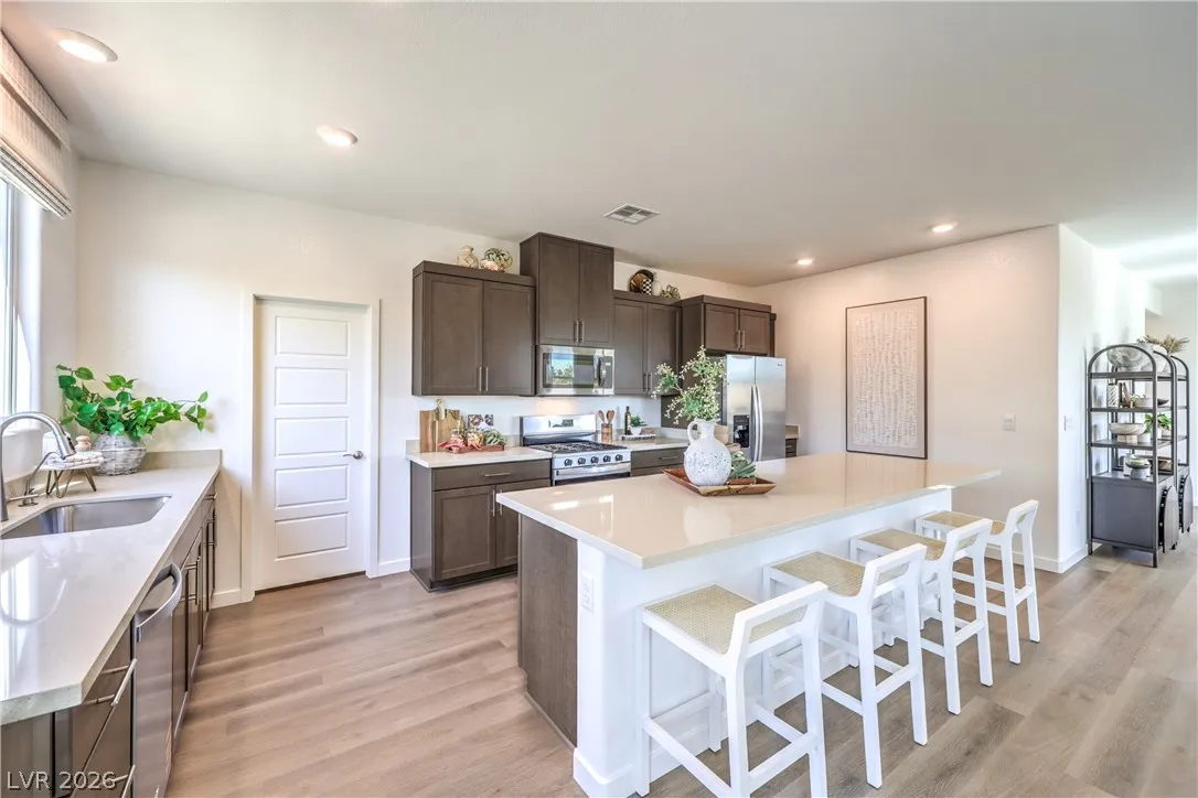BRAND NEW 5 BEDROOM + LOFT D.R. Horton Home backed by Fortune 500 Company. Equipped with a Full Bed/Bath downstairs! Included features: Shaker Style Cabinets with Soft Close Drawers, Stainless Steel Whirlpool Appliances in Kitchen (Dishwasher, Stove Range, & Microwave), Walk-In Kitchen Pantry, Luxury Vinyl Plank Flooring, Quartz Countertops, 9′ Ceiling First Floor, Smart Home Features, Tankless Water Heater. PHOTOS ARE OF MODEL in other DR Horton community HOME ACTUAL FINISHES MAY VARY. The Tropical Falls Sales Office is located at: 6009 Sunshine Shores St. North Las Vegas, NV 89081, (Walnut & Tropical).Sales Office is Open 10am to 5pm Thursday -Monday. Closed Tuesday/Wednesday. Office hours can vary due to holidays and events. Please call with any questions.