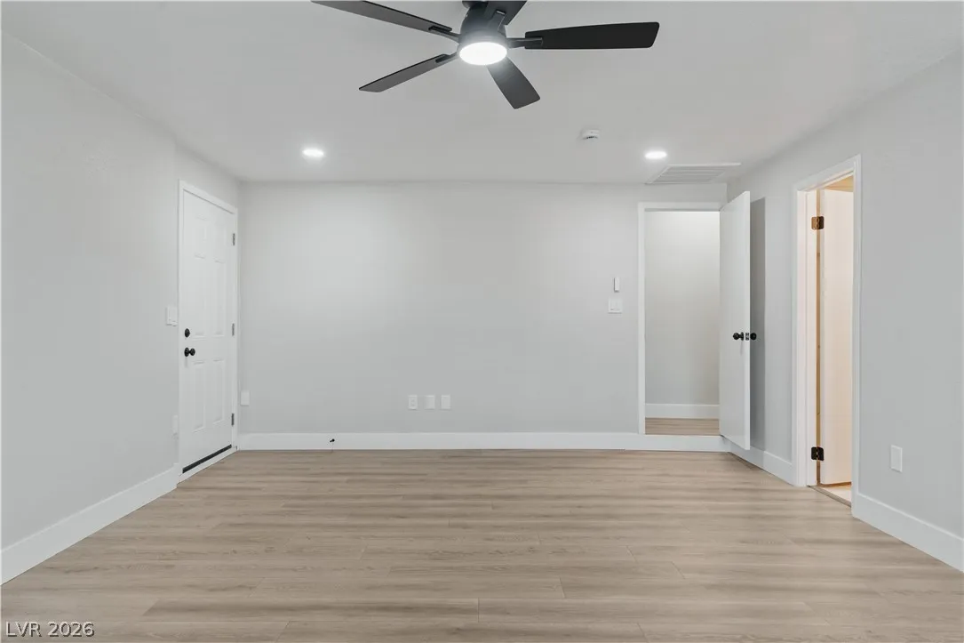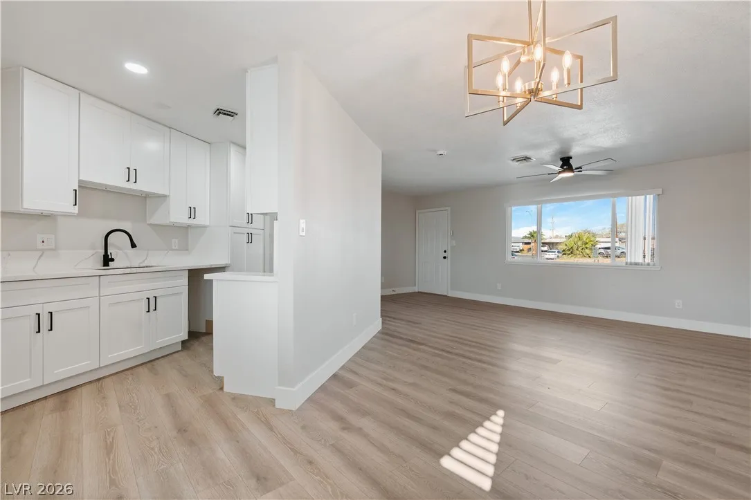 Beautifully renovated 3-bedroom, 2-bathroom home located in North Las Vegas! This updated property features modern finishes throughout, creating a fresh and inviting living space. The open layout offers great natural light and a comfortable flow between the living, dining, and kitchen areas—perfect for everyday living and entertaining. The kitchen showcases updated cabinetry, sleek countertops, and plenty of storage. The spacious primary suite includes a private bathroom for added comfort. Step outside to a large backyard with endless possibilities—ideal for outdoor gatherings, gardening, or creating your own backyard retreat. Conveniently located near shopping, dining, parks, and major roadways.