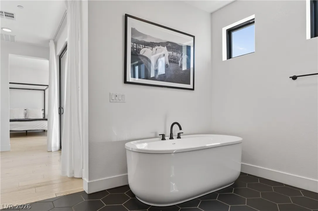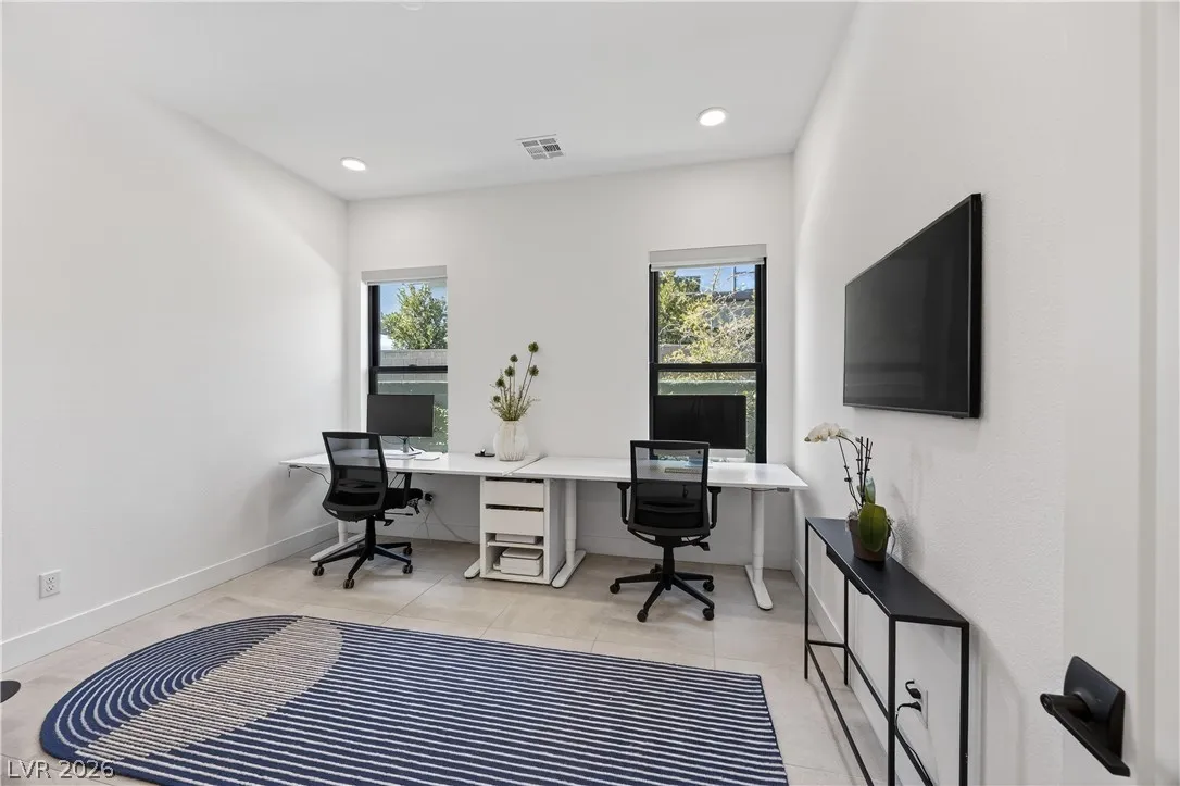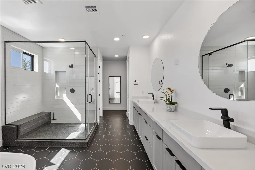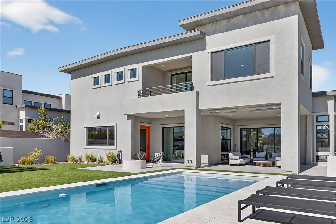 Ever dreamed of living inside a painting? This two-story Summerlin showpiece sits on one of the largest lots with no rear neighbors and unobstructed Red Rock Canyon and mountain views from sunrise to sunset. Inside, 6 bedrooms, 6 bathrooms and an office are wrapped in natural light from oversized windows.