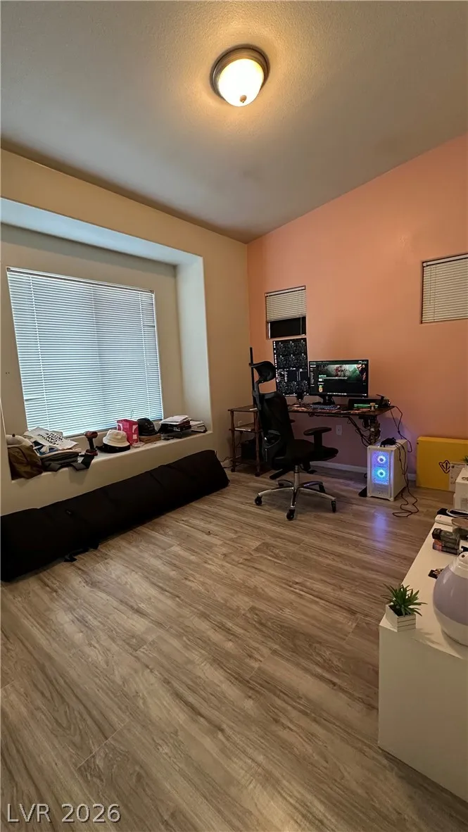 You won’t want to miss this beautifully updated 3-bedroom condo near Mountains Edge, located on the second floor and featuring a detached garage. This stunning home offers vaulted ceilings, a cozy gas fireplace, and a modern paint scheme throughout. Additional highlights include ceiling fans, farmhouse-style lighting fixtures, and newer stainless steel appliances. The kitchen cabinets have been upgraded to a sleek, modern white, creating a bright and stylish space.The home also features laminated wood flooring throughout, adding both durability and elegance. The property is currently occupied by very good tenants who keep the home clean and well maintained.Conveniently located just steps from the community swimming pool, this unit is also minutes from the 215 Freeway, Durango Casino, and the popular UnCommons shopping and dining center.Currently tenant-occupied with excellent tenants who maintain the property in great condition.