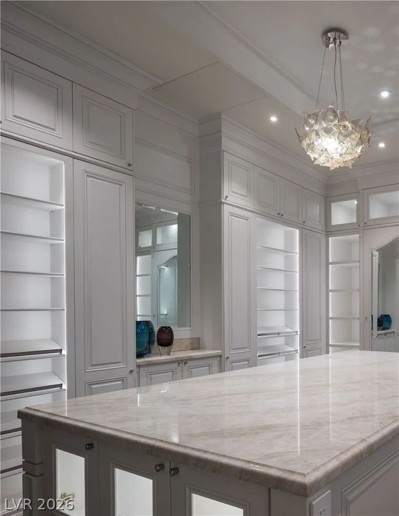 Beautiful home in Tournament Hills on the exclusive TPC Summerlin golf course with outstanding golf and mountain views. This home sits on a huge, 2/3-acre lot and has undergone a no-expense-spared remodel with wood floors and mill work throughout, exuding luxury and warmth. The gourmet kitchen is a dream; it’s loaded with Wolf and Sub-Zero appliances, has a large island, tons of counter space and storage. The enormous primary suite is the ultimate retreat with two gorgeous, spa-quality bathrooms, two incredible boutique-style closets and an en suite office with rich cabinetry. Outdoor spaces abound, including a large courtyard, fabulous backyard with pool and water slide plus ample lounge/dining areas. Wine enthusiasts will delight in the cellar, capable of storing thousands of bottles plus room to host a private tasting. Cinephiles will appreciate the plush movie theater with wet bar. Add’l features: formal dining, secondary bedrooms with en suite baths/walk-in closets, vast terraces.