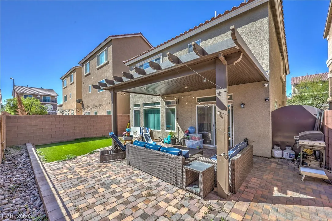 Open concept with laminate floors, stainless steel appliances, granite countertops, super clean, wood shutters throughout, motorized shades in living room, 4 large bedrooms, spacious low maintenance back yard with new aluminum patio cover. American West home. Very desirable community at Coronado Ranch near 215/Jones.