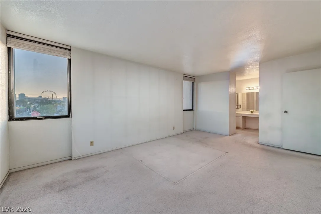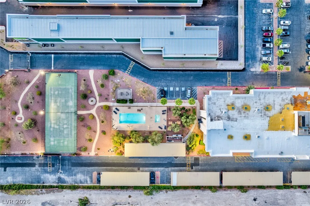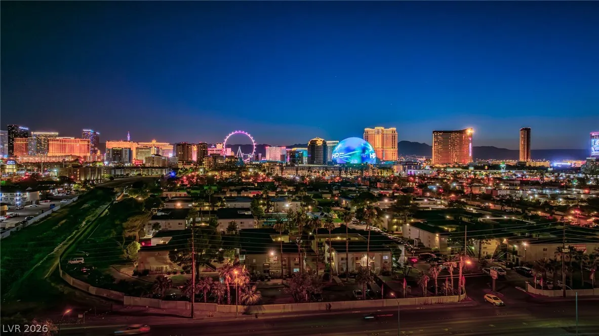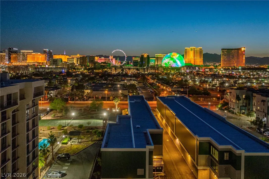 Remarkable Value! Hard to find 1,321 SF 2-bedroom Condo with STRIP VIEWS! This highly desirable end-corner unit is specious and has open floorplan with large living room with vaulted ceilings, lot’s of natural light, two good size bedrooms and two baths. Amazing views of the famous Las Vegas Strip, Sphere and Ferris Wheel directly from the unit. Wimbledon Tennis Club Building is recently renovated and has great amenities to include fitness room, movie theater, ping pong table, outdoor BBQ area, tennis & basketball courts. Convenient location in center of town with walking distance to UNLV, Strip, world class restaurants and shows and only 5 minutes drive to the Harry Reid Airport. ***SOLD AS-IS*** Ready for your improvements, lot’s of potential. Rare investment opportunity in this price point.