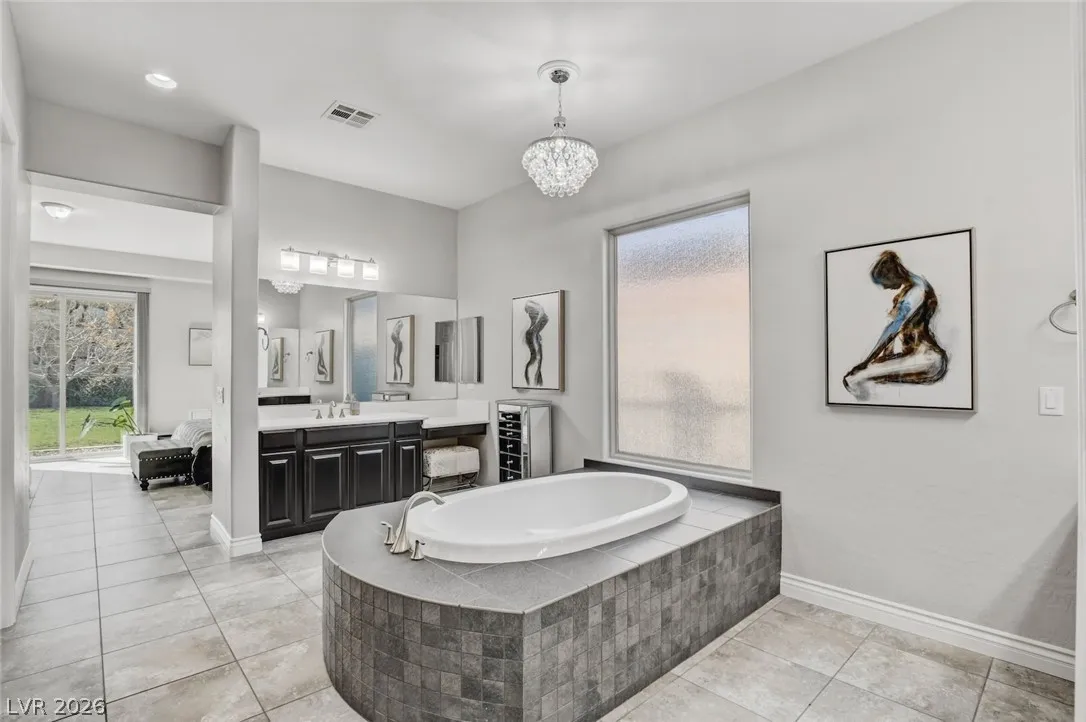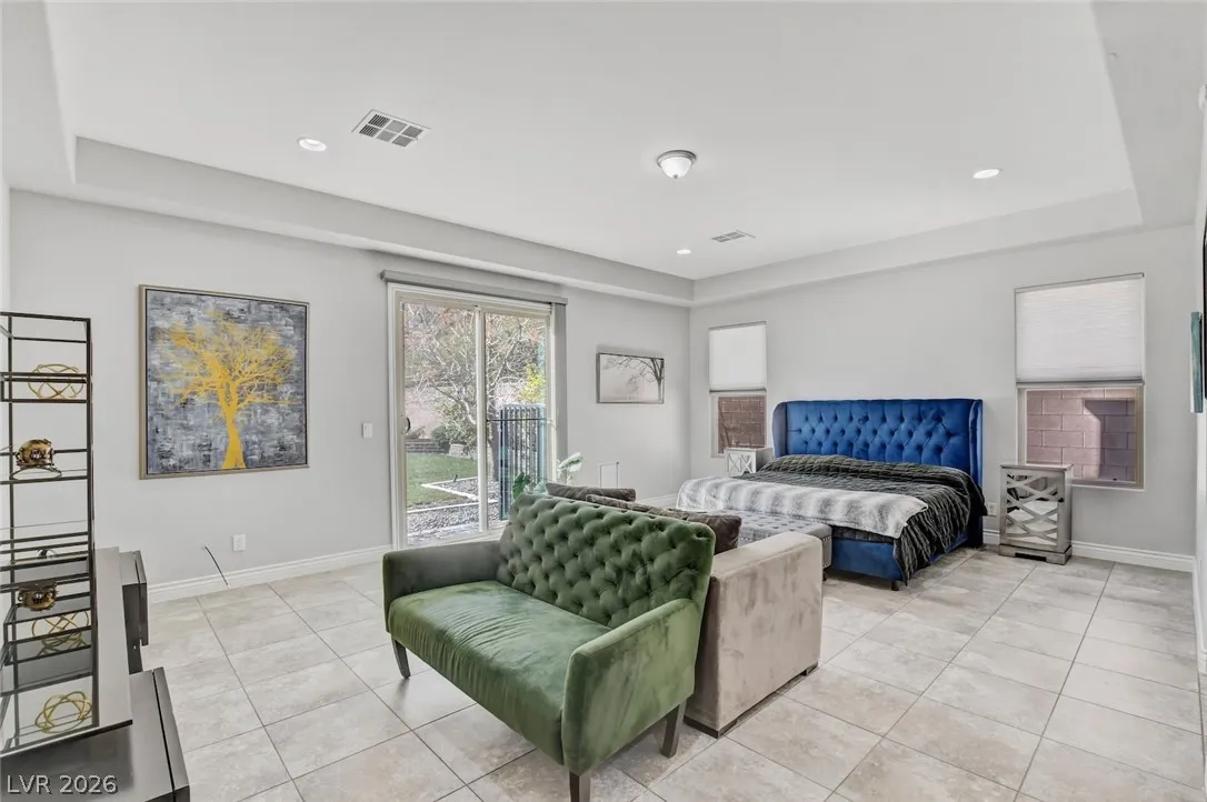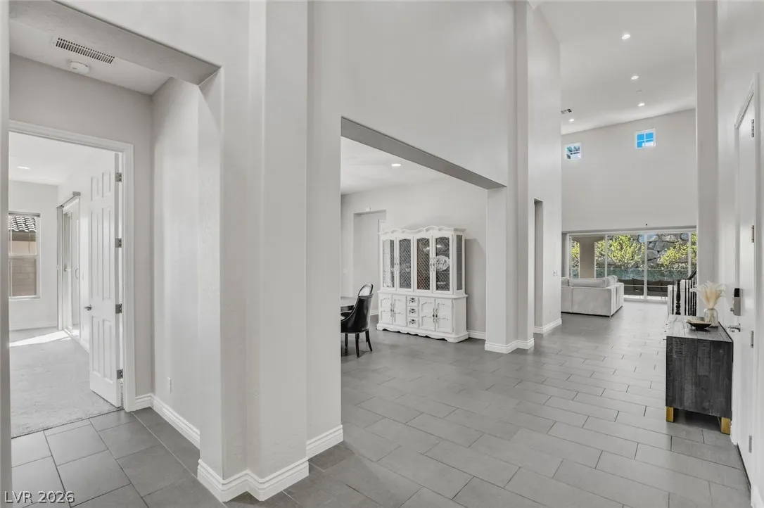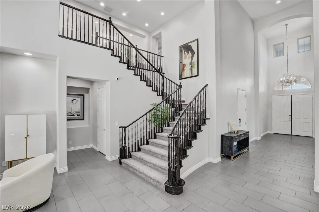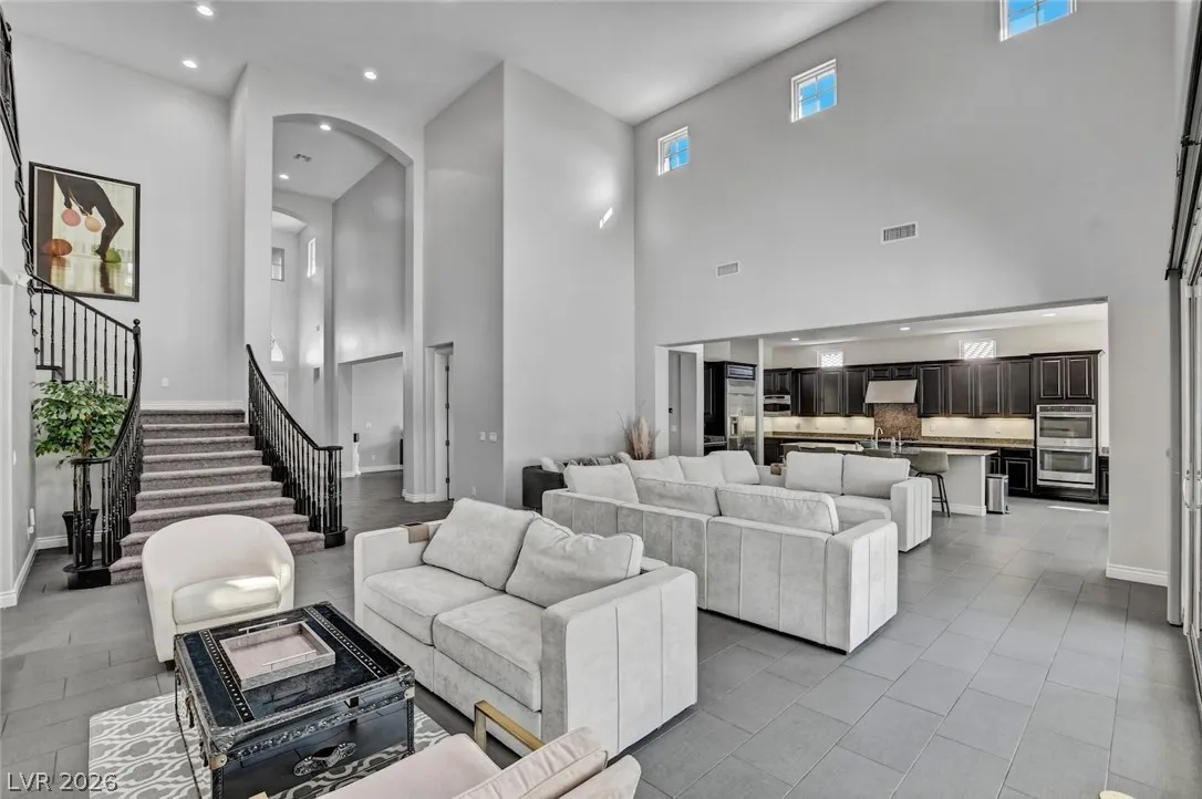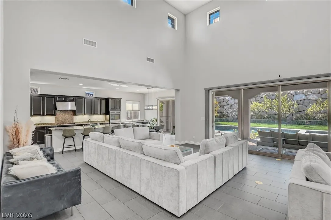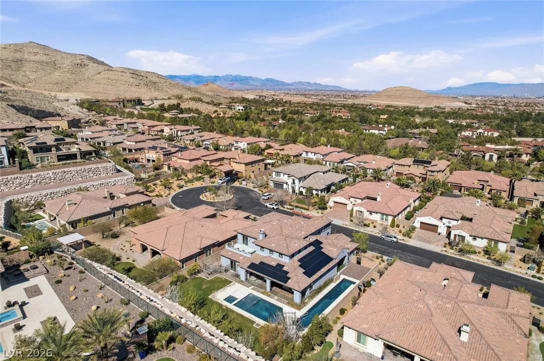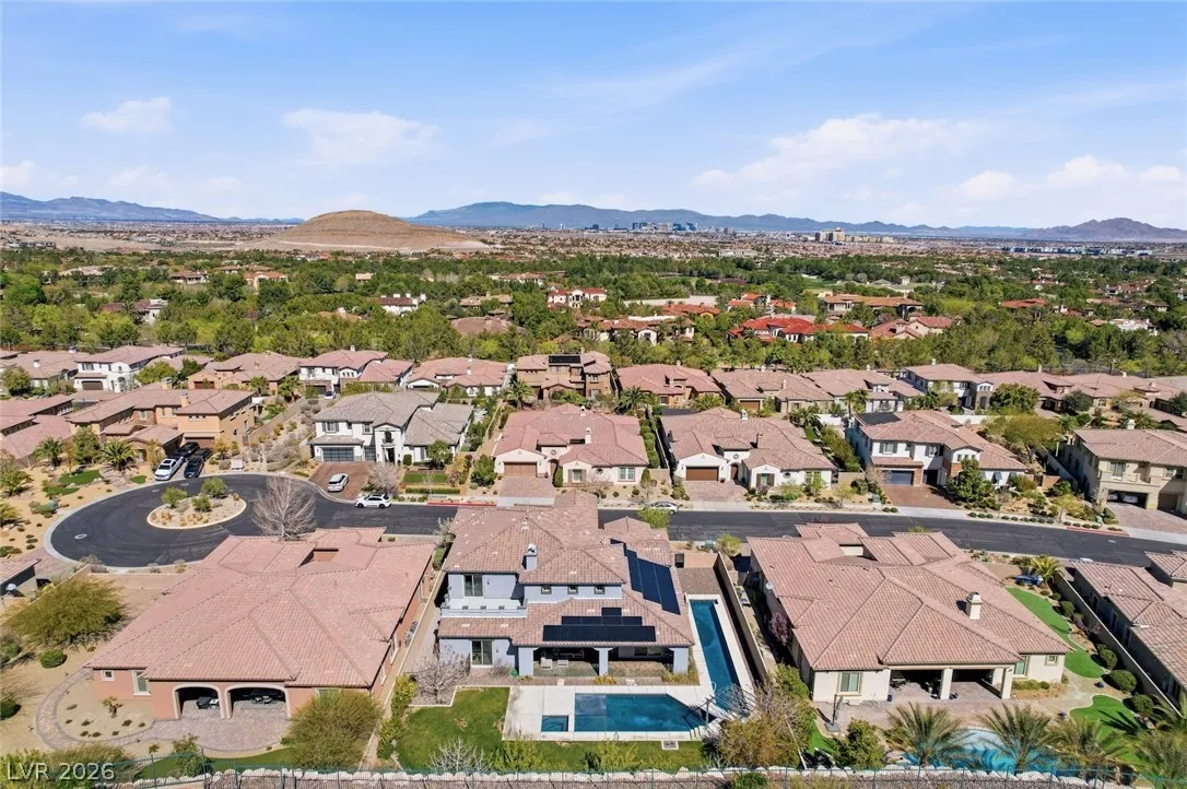 DOUBLE-GATED ESTATE HOME IN GUARD-GATED SOUTHERN HIGHLANDS GOLF CLUB COMMUNITY*PAID-OFF SOLAR ELECTRIC SYSTEM – DRASTICALLY REDUCING THE MONTHLY ENERGY COSTS*NEARLY 1/3 ACRE, PRIVATE, CUL-DE-SAC LOT*POOL, SPA & LAP POOL*FRAMELESS GLASS POOL FENCING, MATURE GRASS, FRUIT TREES & FOLIAGE, SEPARATE GARDEN AREA & SPACIOUS COVERED PATIOS*OPEN FLOORPLAN WITH VOLUME CEILINGS IN LIVING ROOM & ENTRY*CUSTOM LIGHTING & FIXTURES*FORMAL DINING ROOM*ISLAND KITCHEN WITH STAINLESS STEEL APPLIANCES, EXTENDED CABIENTRY/COUNTERS, BREAKFAST BAR, NOOK, PANTRY & BUTLER’S PANTRY*FLEX ROOM DOWNSTAIRS WITH DIRECT ACCESS TO SIDE PATIO*DOWNSTAIRS PRIMARY SUITE WITH HUGE, WALK-IN CLOSET WITH WASHER/DRYER SET, WALK-IN SHOWER, SOAKING TUB & DIRECT ACCESS TO POOL*GUEST BEDROOMS & LOFT UPSTAIRS*BALCONIES FRONT & BACK*UPSTAIRS LAUNDRY*OVERSIZED GARAGE W/LOFT STORAGE & EV CHARGER*POOL, PEST & LANDSCAPE SVCS INCLUDED*EZ ACCESS TO THE STRIP, AIRPORT & RAIDERS PRACTICE FACILITY*CLUB AMENITIES WITH SEPARATE MEMBERSHIP*