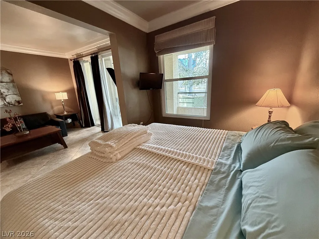 Furnished Luxury Studio Condo Located Inside The Meridian At Hughes Center, A Private Guard Gated Resort-Style Community Located Behind The Linq Promenade Off The LV Strip. Mediterranean Landscaping And Palm-Lined Walkways Create A Relaxed Retreat In The Heart Of The City. Community Amenities Include A Resort-Style Pool And Spa, Fitness Center, Sauna, Racquetball Court, Two Tennis Courts With Pickleball, Poolside Cabanas And Outdoor BBQ Areas With 24-Hour Access. Inside The Condo You’ll Find Stainless Steel Appliances, Washer And Dryer, Stone And Carpet Flooring And A Spacious Walk-In Closet. A Large Covered Patio From Which You Can Enjoy Quiet Mornings Or Step Out To World-Class Dining, Entertainment And Resorts Just Moments Away. An Ideal Las Vegas Retreat Offering Resort-Style Living With Incredible Access To The Energy, Dining And Nightlife Of The Strip.