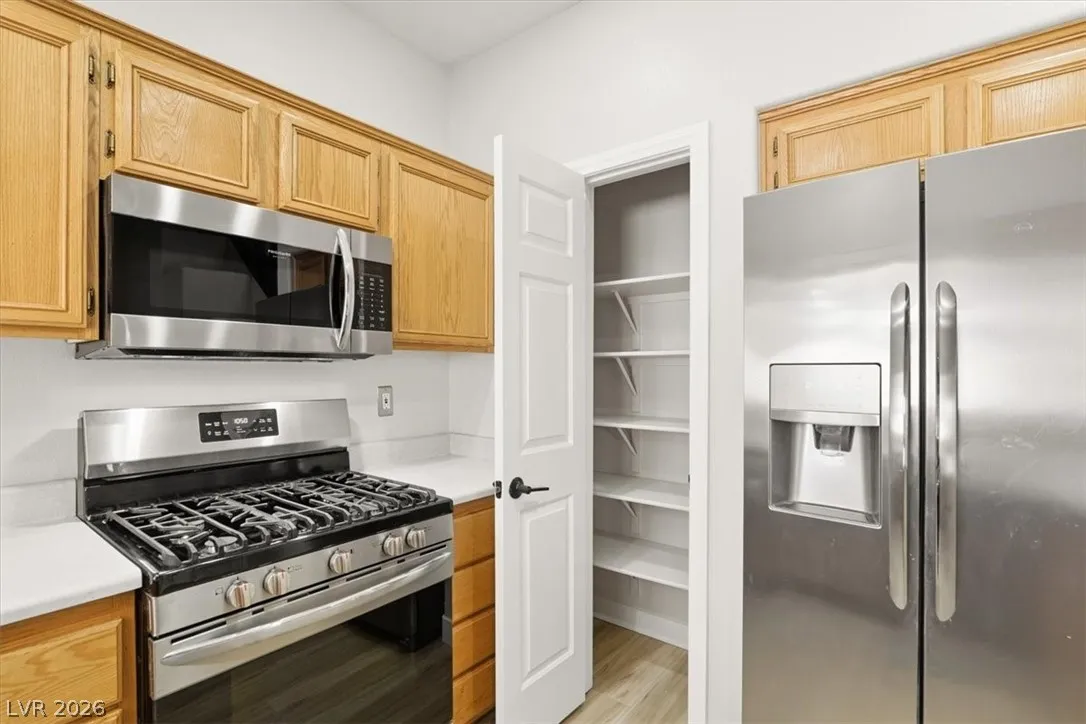 WARMTH, BEAUTY AND STYLE describes this beautiful 2 bedroom, 2 bath home plus a spacious LOFT (One of the bedrooms is downstairs) 2 car garage; Upgrades include: Freshly painted inside *All NEW Carpet upstairs*All NEW Luxury Vinyl Planks throughout the first floor, Stainless Steel Appliances, Water Softener, Solar Screens, Quant back yard with a covered patio***Amazing GATED community w/ clubhouse, Access to 3 beautiful pools, spas, park, gym, BBQ Area. Close to the 215 Freeway, Red Rock Canyon and Mount Charleston* A Must see!!!