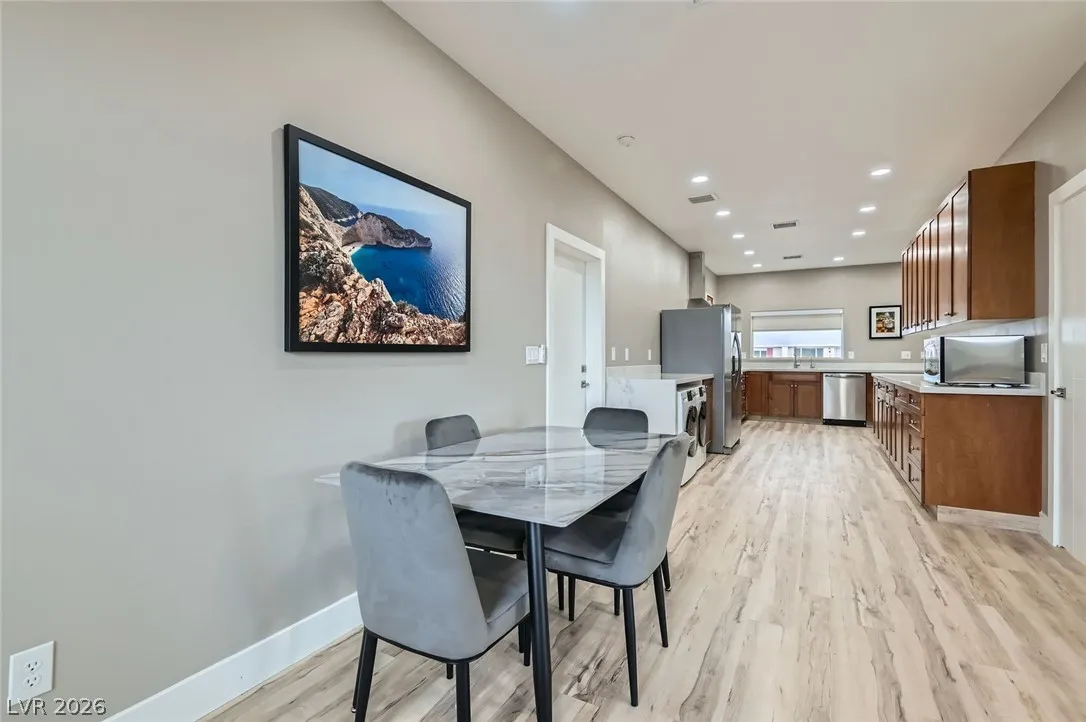 Brand New 2025 Charming Single Story in the heart of Spring Valley. Walk into this absolute completely furnished (brand new) home that boasts 2 bedrooms and 1.5 bath. To the left side is an open kitchen with sprawling quartz countertop and backsplash and custom cabinets, stainless steel Refrigerator, Range, Oven, Dishwasher, Washer and Dryer and fully equipped with kitchen essentials. There is an open layout combined living & dining area with a sliding glass door that leads you to the covered patio set on pavers in the backyard. To the left side of the house are the primary and secondary bedroom and a full bathroom with a huge walk in shower with rainhead shower and a floating bathroom sink set on top of a modern vanity. Living Room and Both Bedrooms have ceiling fans. The living room has smart TV and the sofa is equipped with cellular charger. All utilities – power, water, gas, sewer, trash and internet are ALL INCLUDED in RENT. Flexible Lease Terms Available!