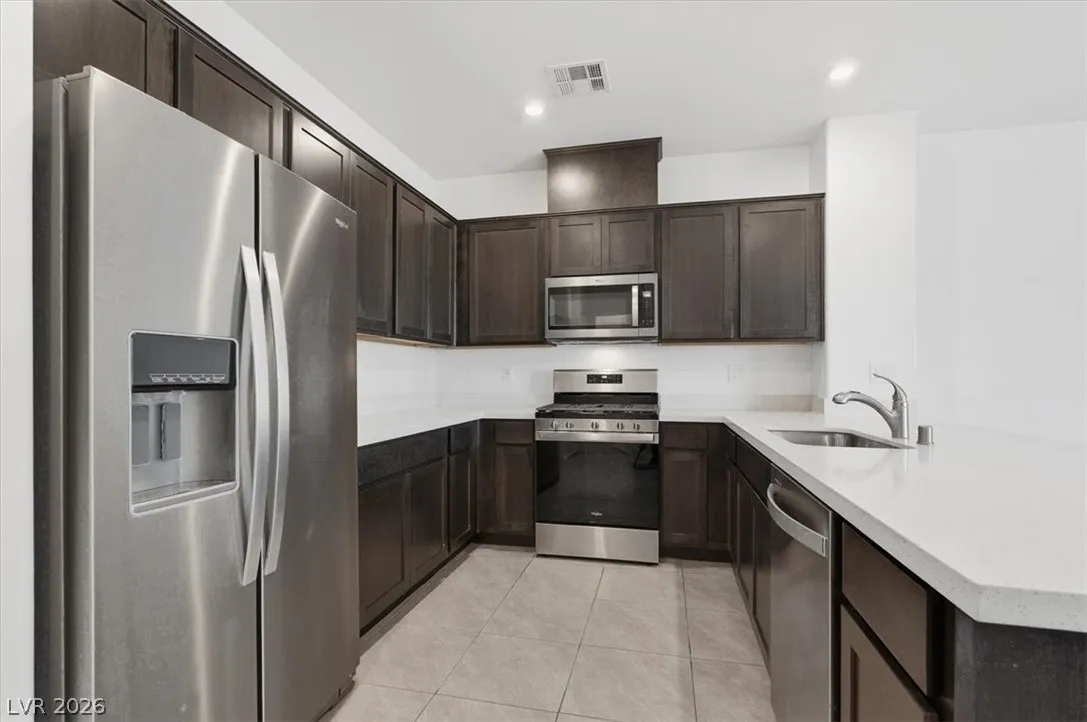 This end unit Cambridge model blends modern style with effortless living in a bright, thoughtfully designed layout. The open concept great room flows seamlessly into a beautiful kitchen featuring quartz countertops, sleek cabinetry, and an oversized island overlooking a sunlit dining area, perfect for entertaining or everyday gatherings. Upstairs offers three spacious bedrooms along with a versatile loft ideal for a home office, media room, or fitness space. Nearly new and energy efficient, the home also includes a two car garage plus the convenience of a washer, dryer, and refrigerator. Ideally positioned within the community and set away from main roads, this residence enjoys a quieter setting while still being just minutes from Henderson’s shopping, dining, dining, and everyday conveniences. A stylish low maintenance home that offers both comfort and sophistication.