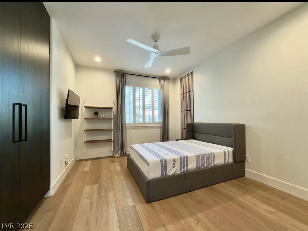 Turnkey Furnished Luxury Home in Gated Peccole Ranch Resort Backyard, Designer Upgrades Experience luxury, privacy, and effortless indoor-outdoor living Professionally designed, this residence blends modern elegance with everyday comfort just minutes from Downtown Summerlin and Red Rock Canyon. This stunning home features 3 bed and 2.5 bath a spacious 3-car garage, and an oversized driveway. Inside, you’ll find vaulted ceilings, two fireplaces, 8-foot doors,plantation shutters, custom curtains and premium luxury vinyl flooring, creating a bright and sophisticated open layout. The custom chef’s kitchen and fully renovated bathrooms feature quartz countertops, designer finishes, and high-end appliances. The primary suite is located in its own wing with direct access to the backyard. Step outside to your private resort-style backyard featuring lush landscaping, a saltwater pool and spa with gas heating, covered patio, and built-in BBQ. solar panels for low electric bills EV charging
