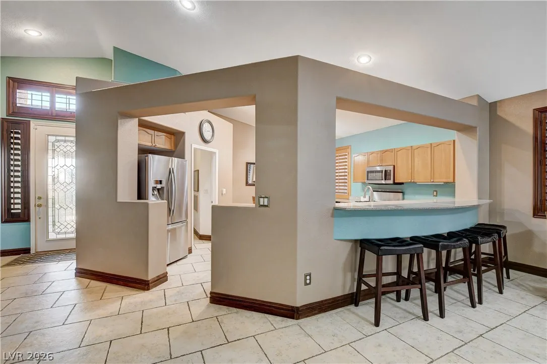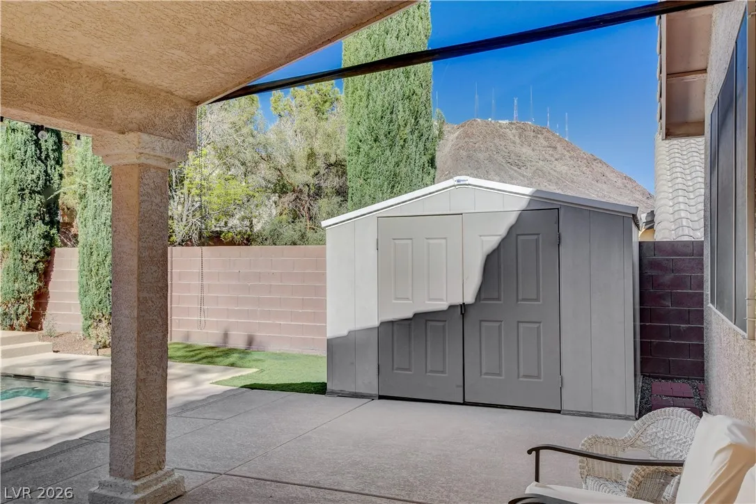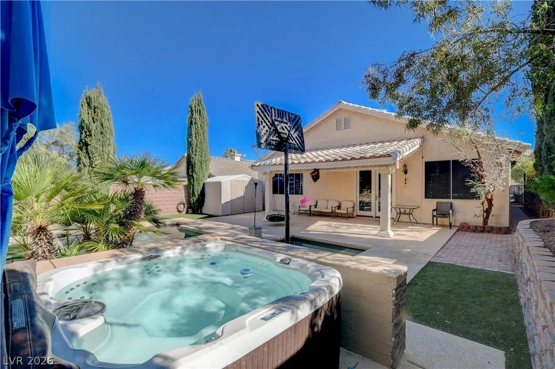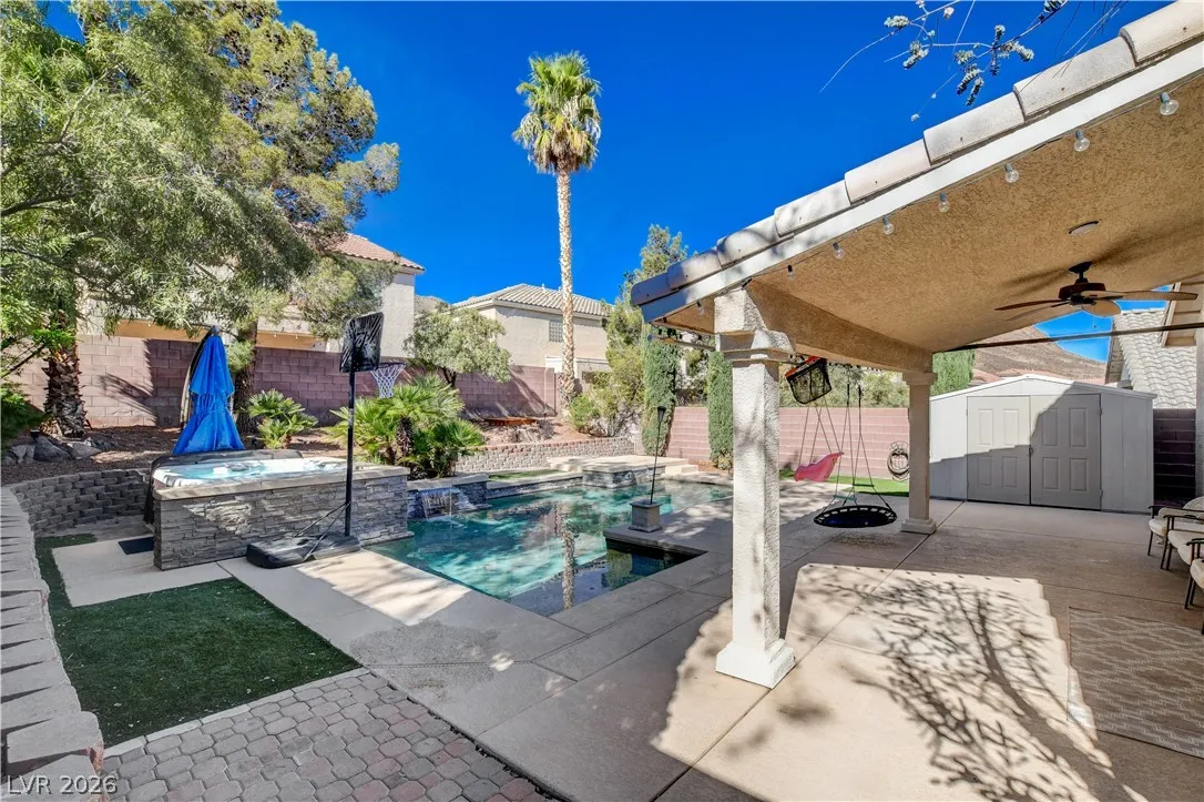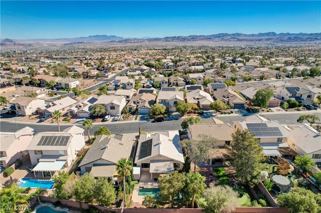 * MOUNTAIN VIEWS & A STUNNING POOL* Nestled in the guard-gated community of Palm Hills, this stunning single-story home offers the perfect blend of comfort, design, & lifestyle. This beautifully designed residence offers an effortless open layout filled w/ natural light, high ceilings, & warm, inviting spaces perfect for gathering w/ family & friends. The kitchen is the heart of the home, seamlessly connected to the living area & complete w/ granite countertops, stainless steel appliances, center island, breakfast bar, & wine fridge! The primary suite offers a spa-like bathroom w/ dual vanities, soaking tub, separate shower, & a generous walk-in closet. Step outside into a resort-style escape featuring a sparkling saltwater pool, elevated spa, tranquil water features, & a covered patio perfect for outdoor fun. Set against breathtaking mountain views, this home is truly special. Located near hiking, biking, & endless outdoor recreation, immerse yourself in the best of Henderson Living!