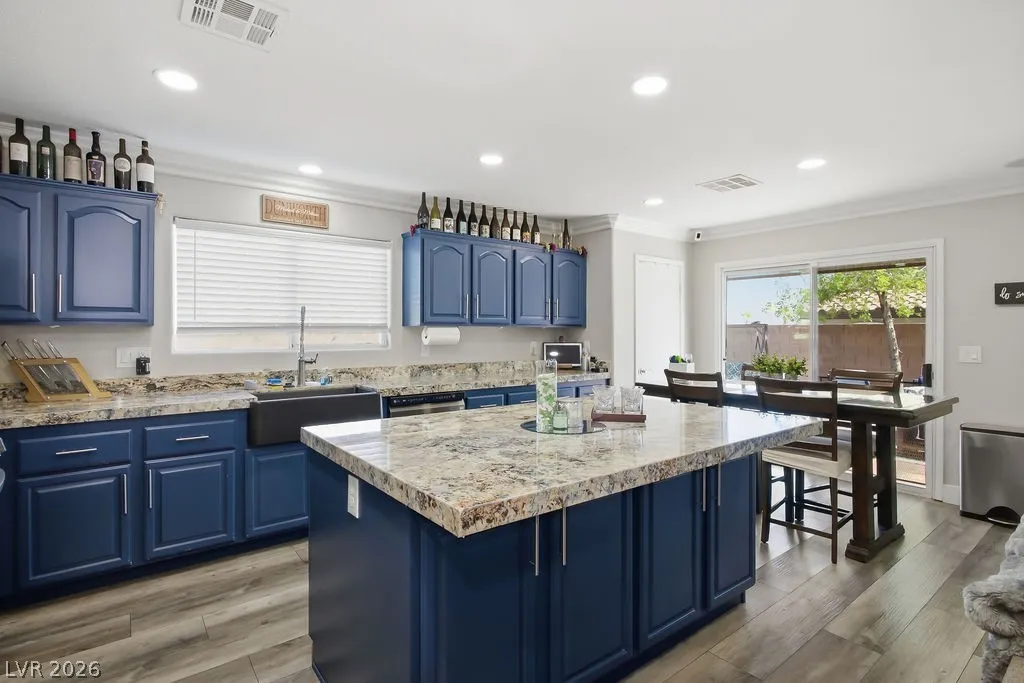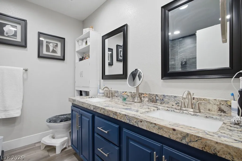 Stunning fully renovated single-story home offering 3 bedrooms, 2 bathrooms, plus a versatile den. Thoughtfully upgraded with brand-new luxury vinyl plank flooring, fresh designer paint, new baseboards, and elegant crown molding throughout. The reimagined kitchen features sleek granite countertops and stainless steel appliances, blending style with functionality. Retreat to the spacious primary suite, highlighted by a beautifully remodeled, spa-inspired shower. The open-concept layout and flexible den create the perfect balance of comfort and sophistication. Ideally located near parks, shopping, dining, and freeway access, this turnkey home delivers modern luxury in one of Henderson’s most desirable areas.