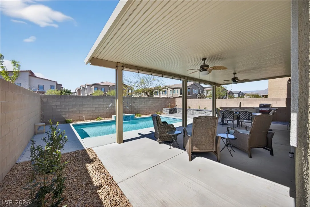 Welcome home to Capella Point in the highly sought after master planned community of Valley Vista! Nestled behind gated entry, this better than new home features tree lined streets and beautifully maintained surroundings. Inside, enjoy an open concept layout with tile flooring, abundant natural light, neutral tones and upgraded lighting fixtures. A spacious kitchen comes complete w/ a large island, granite countertops, stainless steel appliances, soft close cabinets, & a walk-in pantry. Upstairs offers a versatile loft, LVP throughout all areas & all guest bedrooms have walk-in closets. The spacious primary suite creates privacy and has dual vanities, soaking tub and upgraded walk-in shower. The private backyard is an entertainer’s dream with a covered patio, ceiling fans, lush landscaping, and a stunning saltwater pool with no rear neighbors. Valley Vista Community amenities include parks, walking paths & sports courts. Don’t wait, schedule your tour and call this home today!