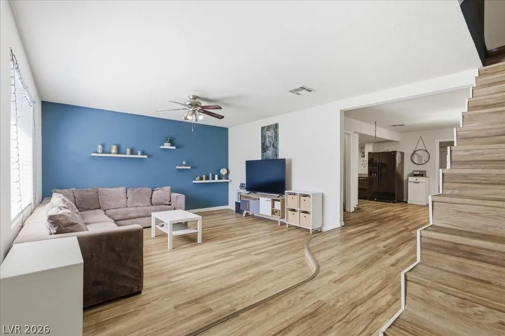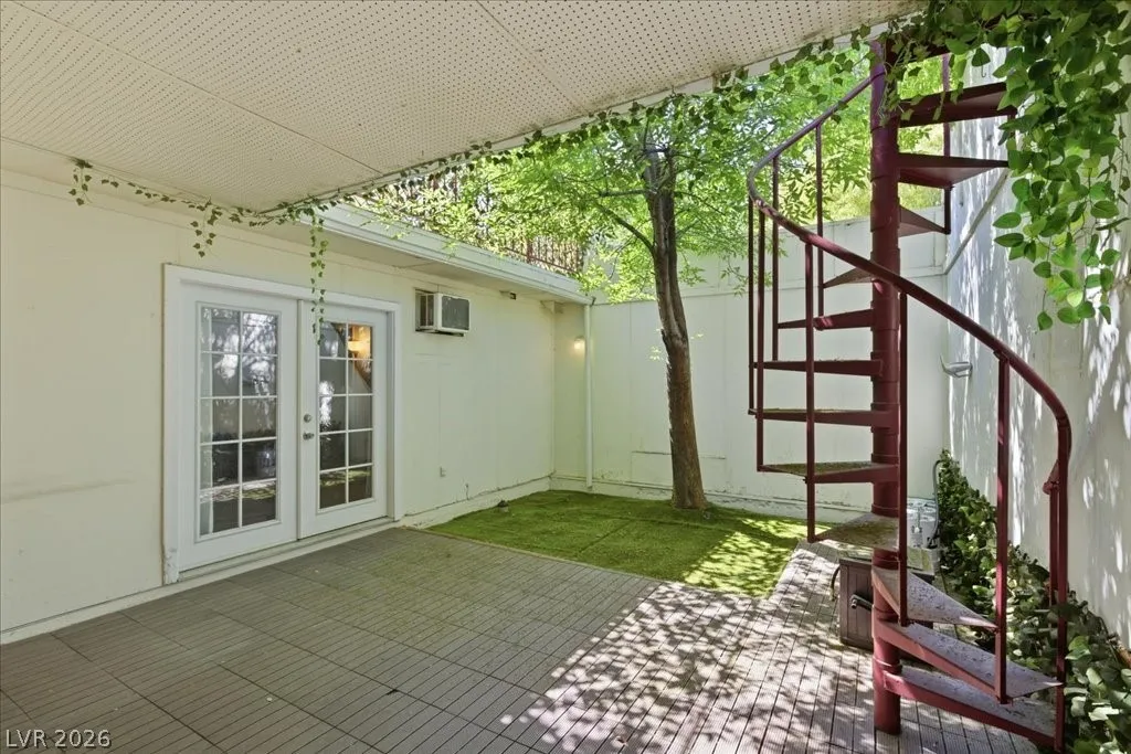 WELCOME HOME TO CHARMING THREE BEDROOM TOWNHOME LOCATED IN LAS VEGAS! THIS IS AN END UNIT- ONLY ONE SHARED WALL! EACH BEDROOM IS ENSUITE + HALF BATH ON FIRST STORY! COMMUNITY FEATURES PLENTY OF PARKING, MATURE TREES AND LANDSCAPING, GRASSY AREAS, AND COMMUNITY POOL! PRIMARY SUITE LOCATED ON SECOND STORY WITH RENOVATED BATH AND COVERED BALCONY WITH STAIRCASE TO FIRST STORY PATIO AND DIRECT ACCESS TO TWO CAR GARAGE! PROPERTY WAS RENOVATED THROUGHOUT (EVERYWHERE BUT THE KITCHEN)! TWO BEDROOMS UPSTAIRS AND ONE BEDROOM DOWN WITH DIRECT ACCESS TO BACK PATIO AND GARAGE. TWO CAR GARAGE FEATURES WASHER & DRYER SET. ALL APPLIANCES STAY WITH THE HOME! ENJOY EASY ACCES TO WORLD FAMOUS LAS VEGAS STRIP, WORLD-CLASS DINING AND ENTERTAINMENT, EASY FREEWAY ACCESS, AND MORE! WELCOME HOME!!