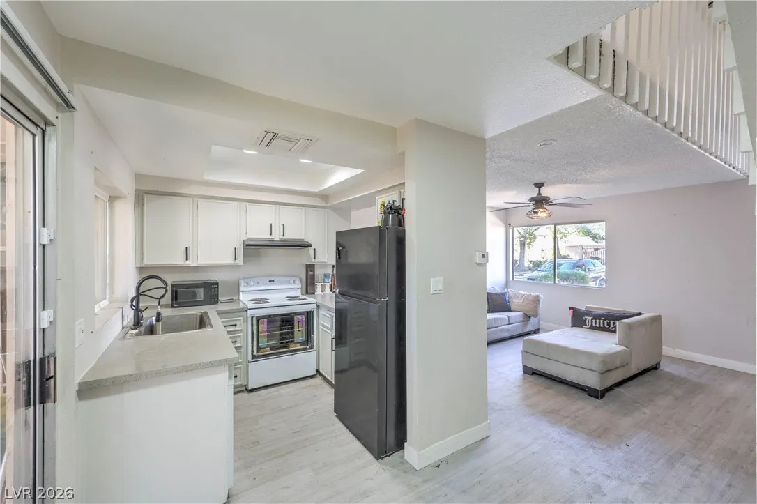 Charming 2-story townhome featuring a unique loft-style 1 bed, 1 bath layout with an open-concept design that feels bright and spacious. This property offers incredible potential for a first-time buyer or savvy investor looking to add value. Upgrades include luxury vinyl plank flooring and custom quartz countertops, giving the home a modern touch. The upstairs loft bedroom provides a private retreat separate from the main living area. Enjoy a private covered, enclosed patio—perfect for relaxing or additional storage. Located in a community with a pool and conveniently close to shopping, dining, and easy highway access. Priced to sell and full of opportunity—bring your vision and make this home your own!