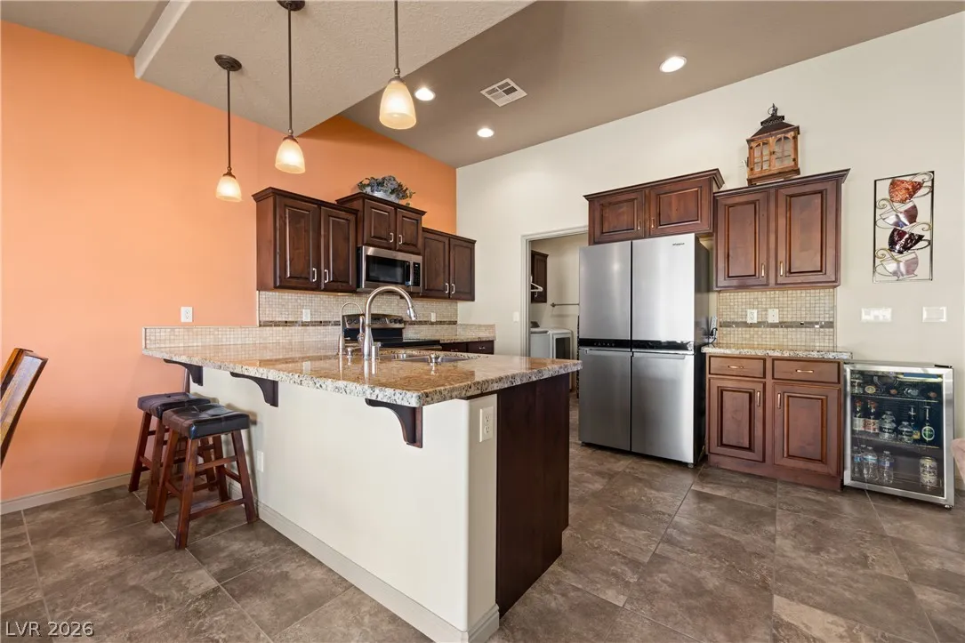 Welcome to this charming townhome in Santa Teresa Estates, located in the heart of Mesquite, Nevada! Offering 2 bedrooms and 2 full bathrooms, this well-maintained home features an inviting open-concept layout designed for both everyday living and entertaining.The kitchen is a standout with granite countertops, a spacious pantry, and abundant storage-perfect for keeping everything organized and within reach. The great room is enhanced by vaulted ceilings, creating a bright and airy feel throughout the main living space. Both bedrooms offer walk-in closets, providing plenty of room for storage and comfort. The fully landscaped, oversized backyard features a charming putting green, a unique cactus garden, and plenty of space to relax or entertain. It’s also pet-friendly, making it ideal for your furry companions. With great curb appeal and a location in one of Mesquite’s desirable communities, this home offers the perfect blend of style, space, and outdoor enjoyment!