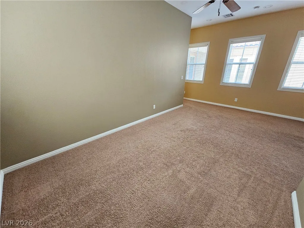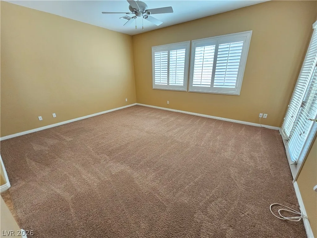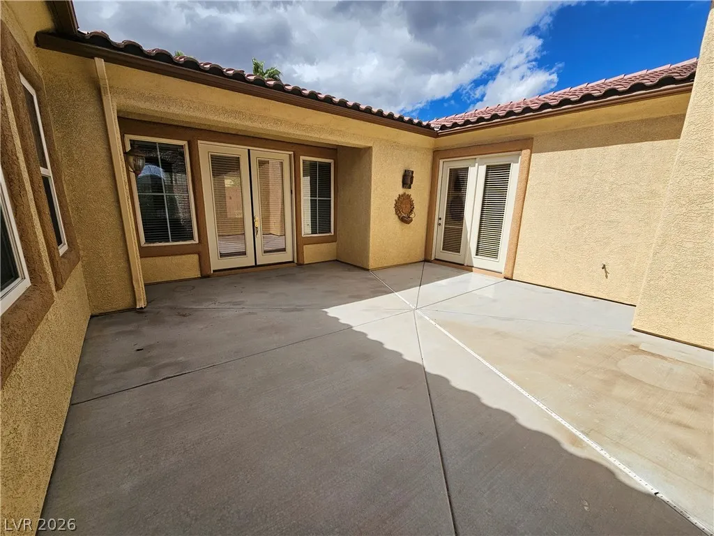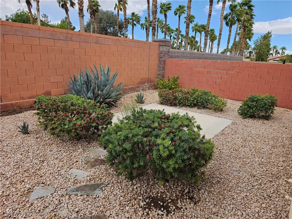 Don’t miss this gorgeous single story with gated courtyard entry! Gated community! Three car garage! New carpet! Three bedrooms, den and two and a half baths. Kitchen features substantial counter space with granite counters, walk in pantry, large island and pendant lighting. Separate living and family rooms. Spacious formal living with ceiling fan. Laundry room has sink and storage cabinets and access to backyard. Primary bedrooms are separate from other bedrooms and comes with walk in closet and French doors to backyard. Primary bathroom has double sinks, vanity area and separate tub and shower. Cover patio in backyard. Manicured desert landscaping in front and backyard. Tenant to verify all information including schools.