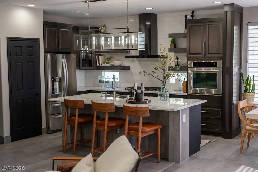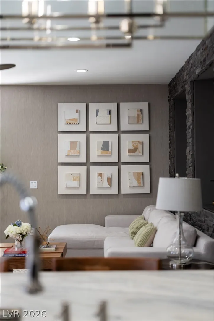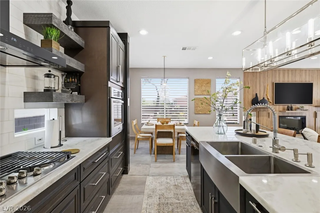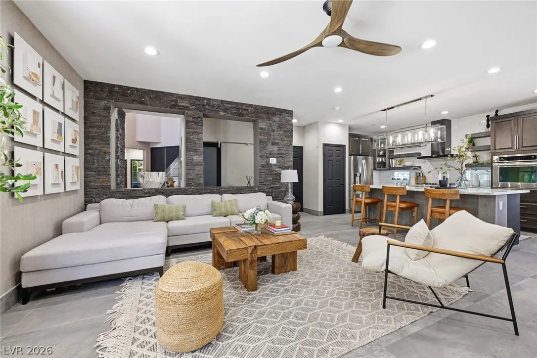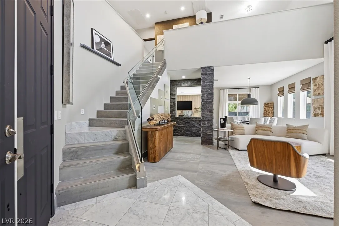 This Summerlin home is FULLY FURNISHED, offering an unmatched blend of sophisticated style and everyday comfort. Curated by Hue Interior Designs, the interior palette is rooted in nature; natural driftwood elements are woven throughout: marble kitchen countertops, hand-selected accent pieces, custom furniture and architectural details that introduce warmth, texture, and the unhurried beauty of weathered organic form. The result is a quiet luxurious interior — one where raw and refined coexist, every room invites you to slow down. Textured textiles, matte stone surfaces, and natural wood furnishings— in warm neutral tones complete an aesthetic that feels curated yet intimate. Beyond furnishings, this residence has been outfitted with the same care & intentionality — where every drawer you open and every cabinet you reach into reveals something thoughtfully placed, beautifully chosen, ready for use. The experience of this home is complete from the moment you walk through the door.