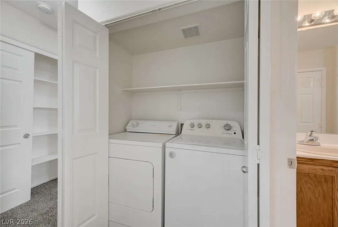 Great Floor Plan with Dual Primary Suites & Prime Location! This well-designed home features a highly desirable layout with a full bedroom and bathroom downstairs, offering convenient access to the backyard—perfect for guests or multi-generational living. Upstairs, enjoy an additional primary suite with a private balcony, creating a relaxing retreat with added privacy. The home offers a functional and open layout ideal for both everyday living and entertaining. Additional highlights include a washer, dryer, and refrigerator included, making this home truly move-in ready. Located in an excellent area close to schools, shopping, dining, and easy freeway access, with proximity to Nellis Air Force Base, this home offers both convenience and lifestyle. Don’t miss this opportunity to rent a home with flexibility, comfort, and a fantastic location!
