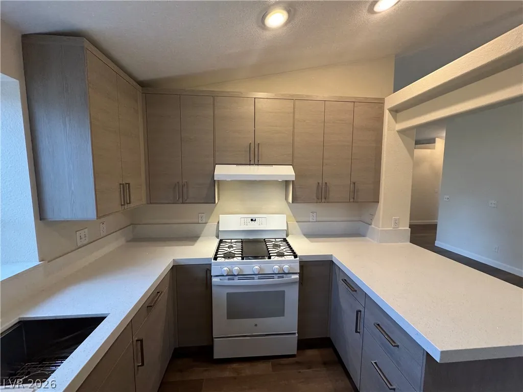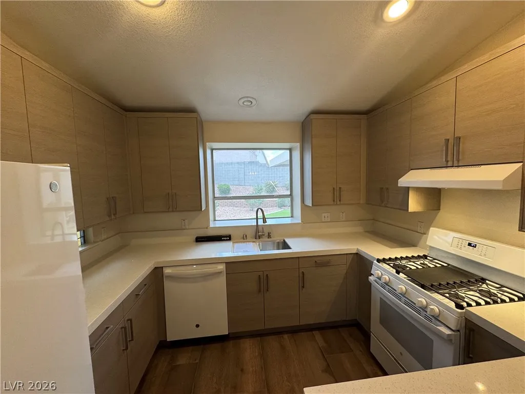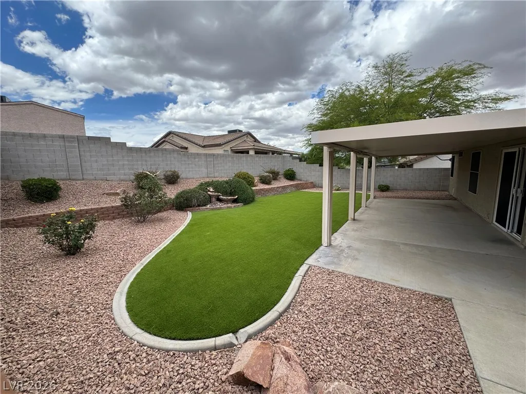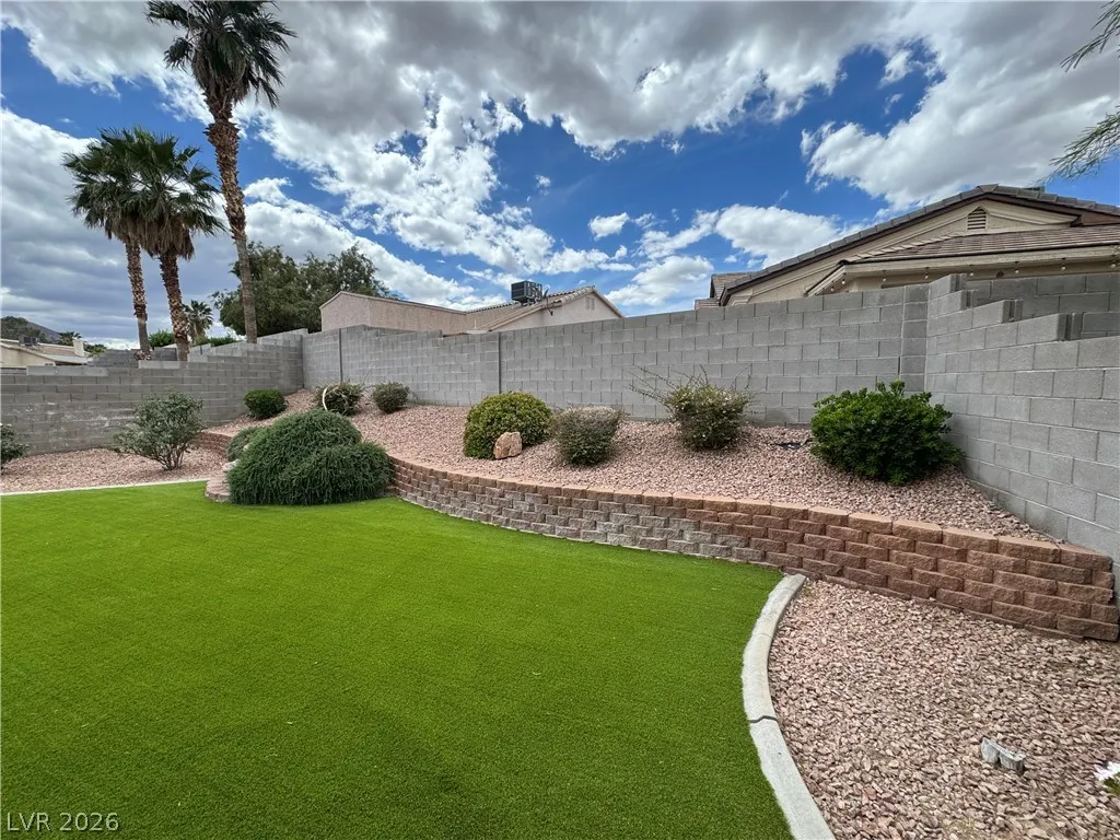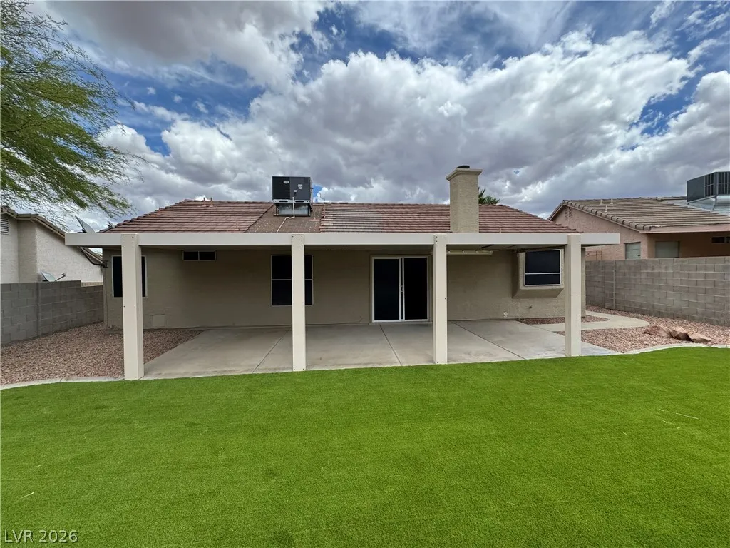 BEAUTIFUL 3 BEDROOM, 2 BATH ONE-STORY HOME WITH NO HOA. BRAND NEW KITCHEN CABINETS, QUARTZ COUNTERTOPS, SINK, AND FAUCET. NEW LARGE FORMAT WOOD LIKE TILE THROUGHOUT. MODERN BASEBOARDS AND FRESH PAINT! ENTRY LIVING ROOM WITH VAULTED CEILINGS AS YOU ENTER. KITCHEN WITH GARDEN WINDOW, VAULTED CEILINGS, BREAKFAST BAR, & RECESSED LIGHTING. PRIMARY WITH VAULTED CEILINGS, WALK-IN CLOSET, CEILING FAN & LIGHT. “JACK AND JILL” GUEST BEDROOMS THAT CAN BE SEPARATED OR ONE SPACE. WASHER AND DRYER INCLUDED IN CLOSET. TWO CAR GARAGE WITH ENTRY TO THE HOME. HUGE BACKYARD WITH TURF & LARGE COVERED PATIO SPACE MAKE IT A GREAT SPOT FOR ENTERTAINING GUESTS. THIS PROPERTY IS LOCATED JUST DOWN THE STREET FROM CSN HENDERSON CAMPUS, FOOTHILL HIGH SCHOOL, NEARBY GROCERY, DINING, SHOPPING JUST MINUTES AWAY, AND NEARBY FREEWAY ENTRANCE! A MUST SEE.