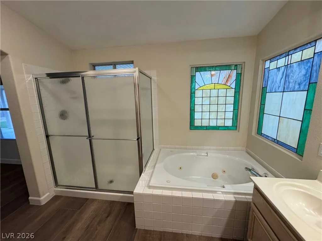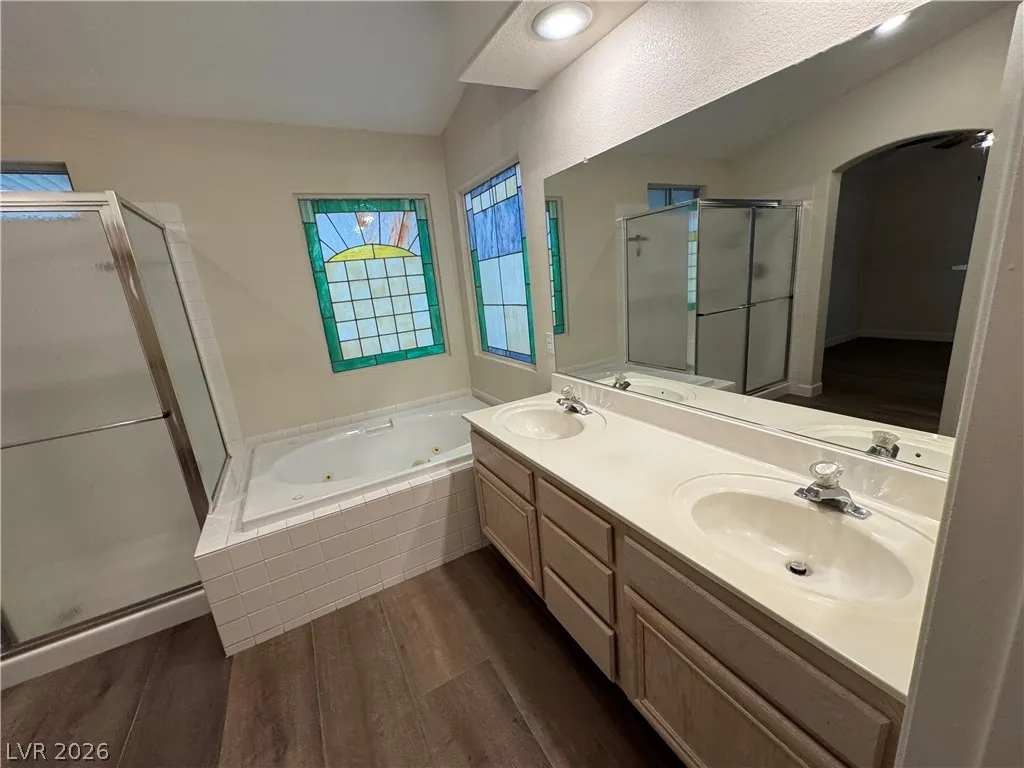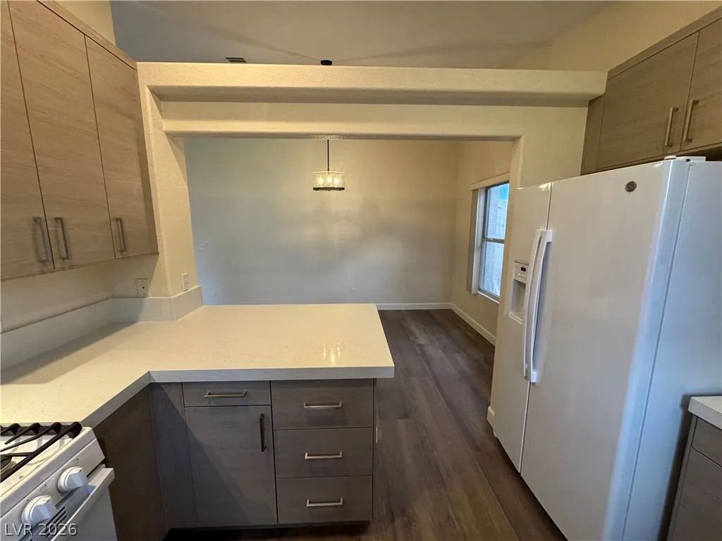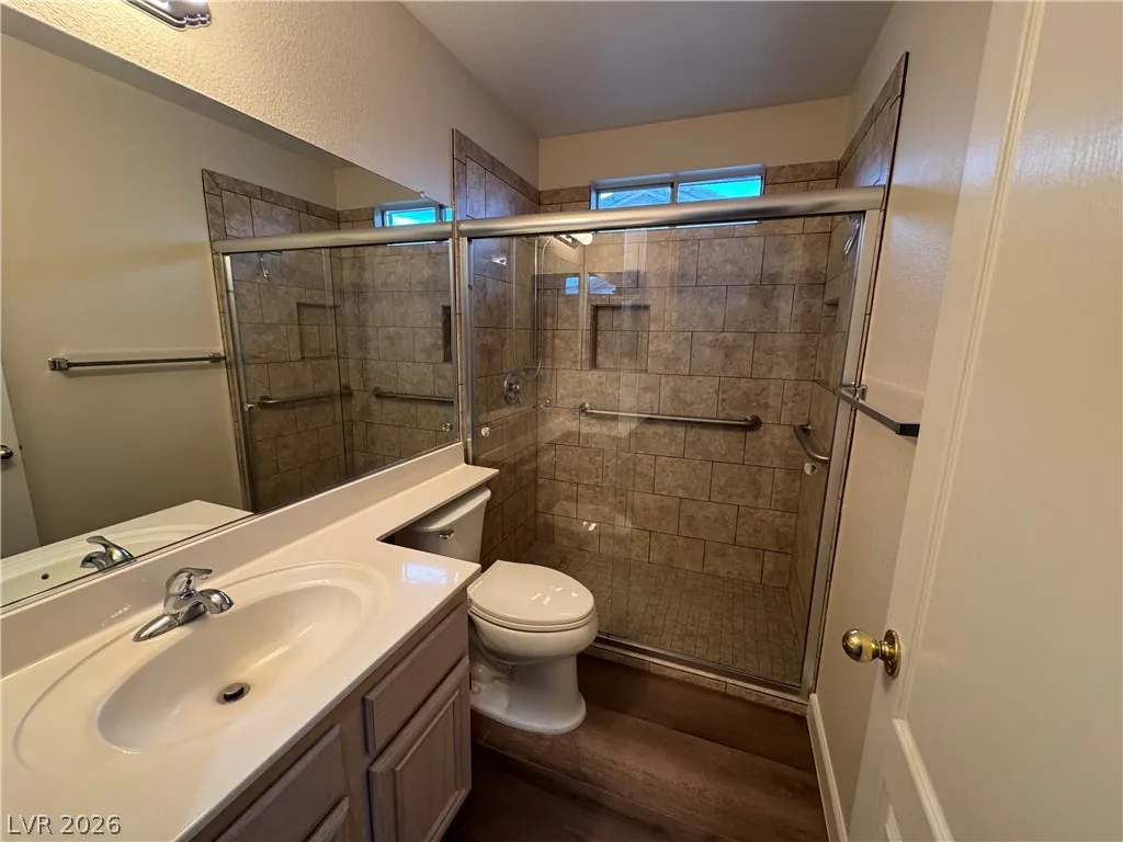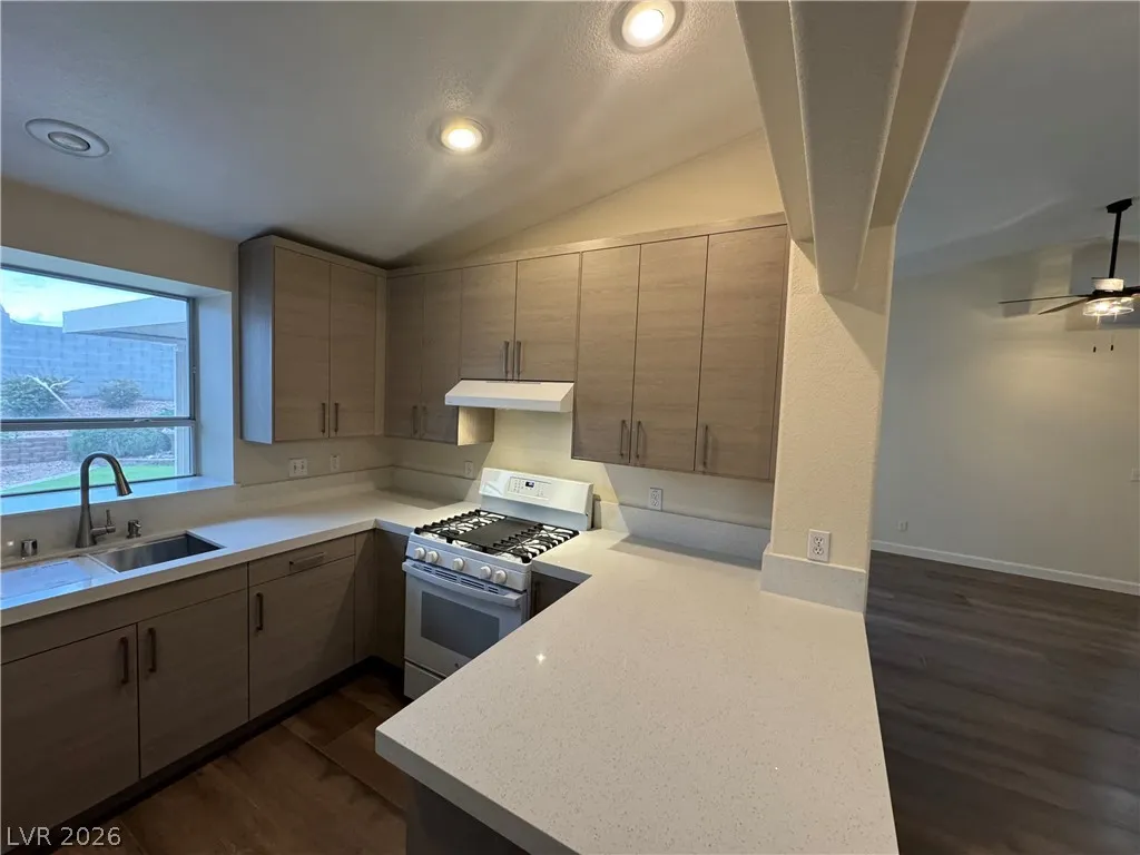 BEAUTIFUL 3 BEDROOM, 2 BATH ONE-STORY HOME WITH NO HOA. BRAND NEW KITCHEN CABINETS, QUARTZ COUNTERTOPS, SINK, AND FAUCET. NEW LARGE FORMAT WOOD LIKE TILE THROUGHOUT. MODERN BASEBOARDS AND FRESH PAINT! ENTRY LIVING ROOM WITH VAULTED CEILINGS AS YOU ENTER. KITCHEN WITH GARDEN WINDOW, VAULTED CEILINGS, BREAKFAST BAR, & RECESSED LIGHTING. PRIMARY WITH VAULTED CEILINGS, WALK-IN CLOSET, CEILING FAN & LIGHT. “JACK AND JILL” GUEST BEDROOMS THAT CAN BE SEPARATED OR ONE SPACE. WASHER AND DRYER INCLUDED IN CLOSET. TWO CAR GARAGE WITH ENTRY TO THE HOME. HUGE BACKYARD WITH TURF & LARGE COVERED PATIO SPACE MAKE IT A GREAT SPOT FOR ENTERTAINING GUESTS. THIS PROPERTY IS LOCATED JUST DOWN THE STREET FROM CSN HENDERSON CAMPUS, FOOTHILL HIGH SCHOOL, NEARBY GROCERY, DINING, SHOPPING JUST MINUTES AWAY, AND NEARBY FREEWAY ENTRANCE! A MUST SEE.
