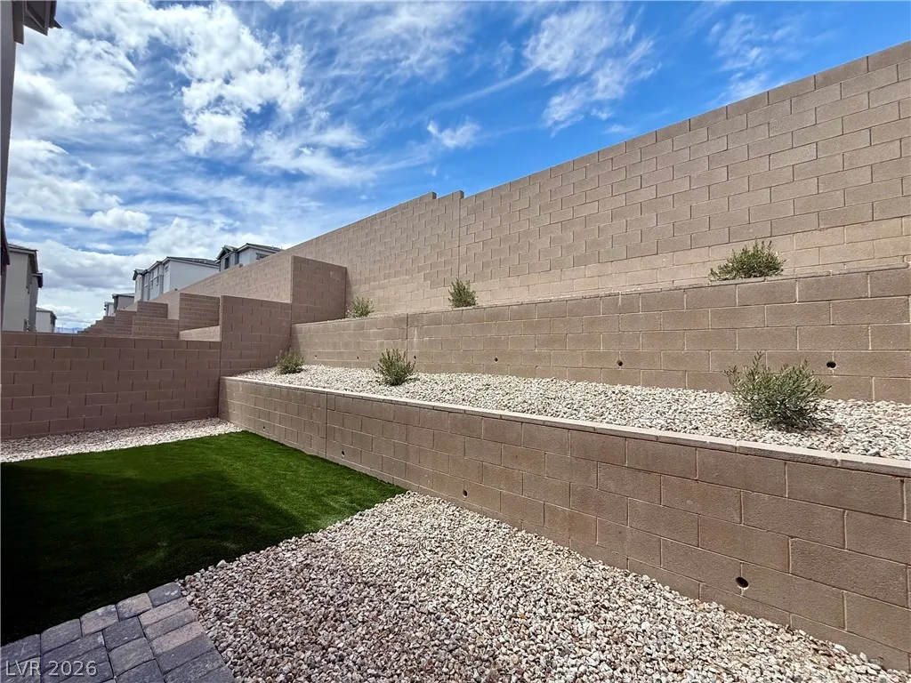 The beautifully landscaped backyard features a low-maintenance turf area, perfect for relaxing or entertaining.