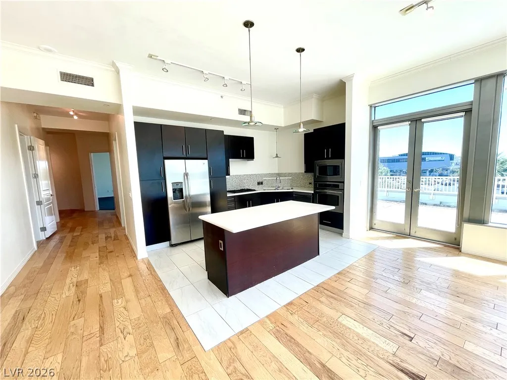 This spacious condo features 3 bedrooms and 2 full bathrooms. 3 bedroom is currently set up as a media room. The open-concept kitchen includes a large island, dining area, upgraded cabinetry, and stunning white quartz countertops.