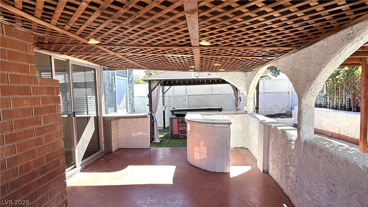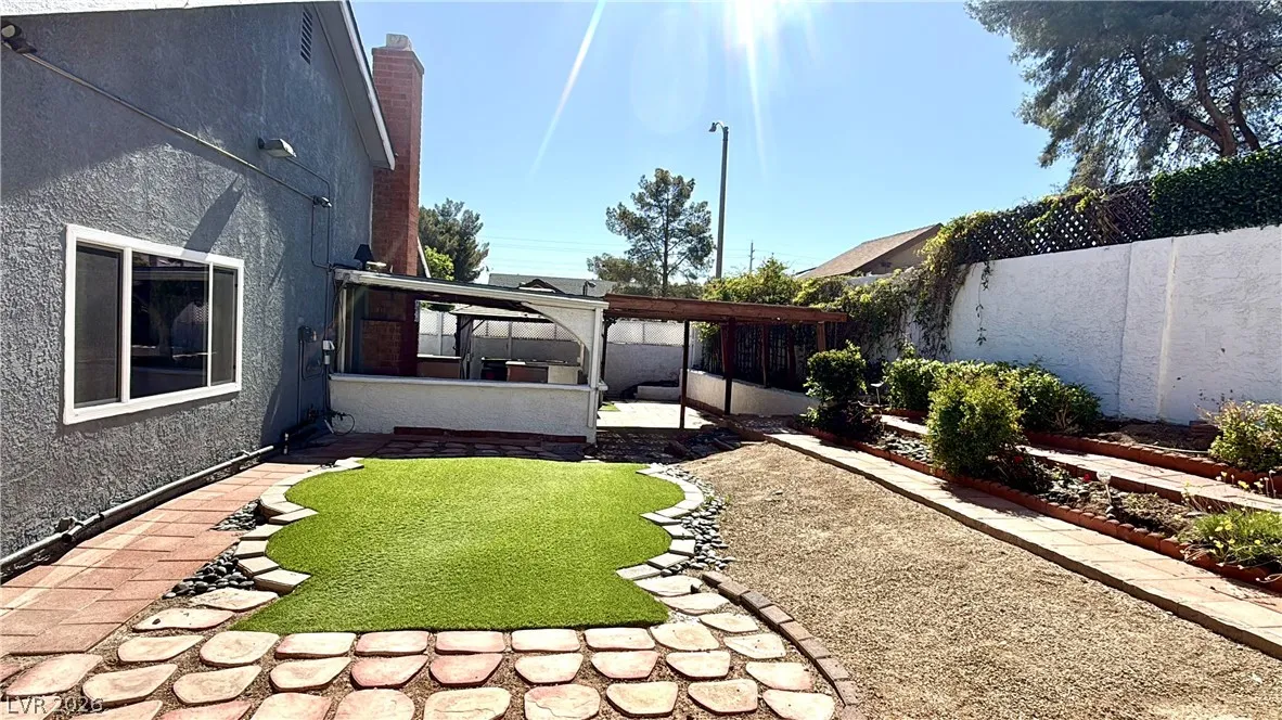 Single-story 4 bed, 2 bath home in prime Henderson location with no HOA. End-cap lot offers added privacy and ample parking, including a driveway for up to 4 vehicles plus street parking. Interior features a nice remodel with fresh paint, updated flooring, new custom cabinets, new hood, a spacious living room with fireplace, and ceiling fans throughout. Large primary bedroom provides plenty of space. Backyard includes covered areas for projects or entertaining, BBQing, mini bar, extra storage, workshop area, plus a relaxing jacuzzi as a curtsey of the owner however as-is. Pet-friendly and move-in ready—this is a must-see! Price includes monthly spa cleaning services and trash fee.