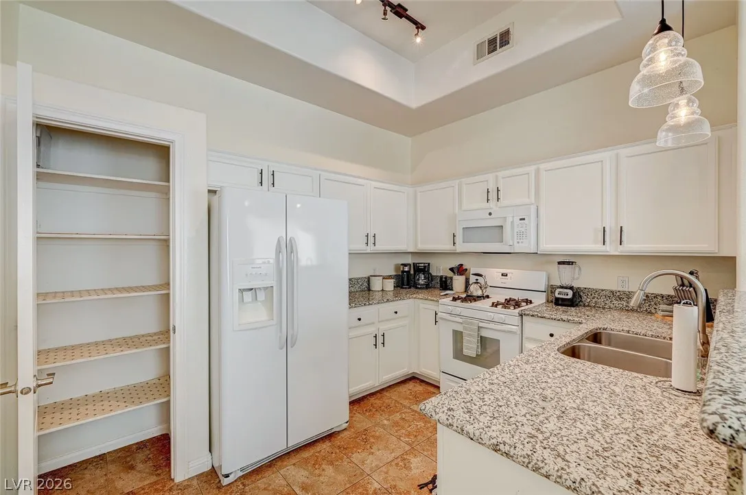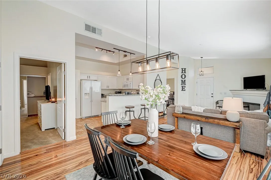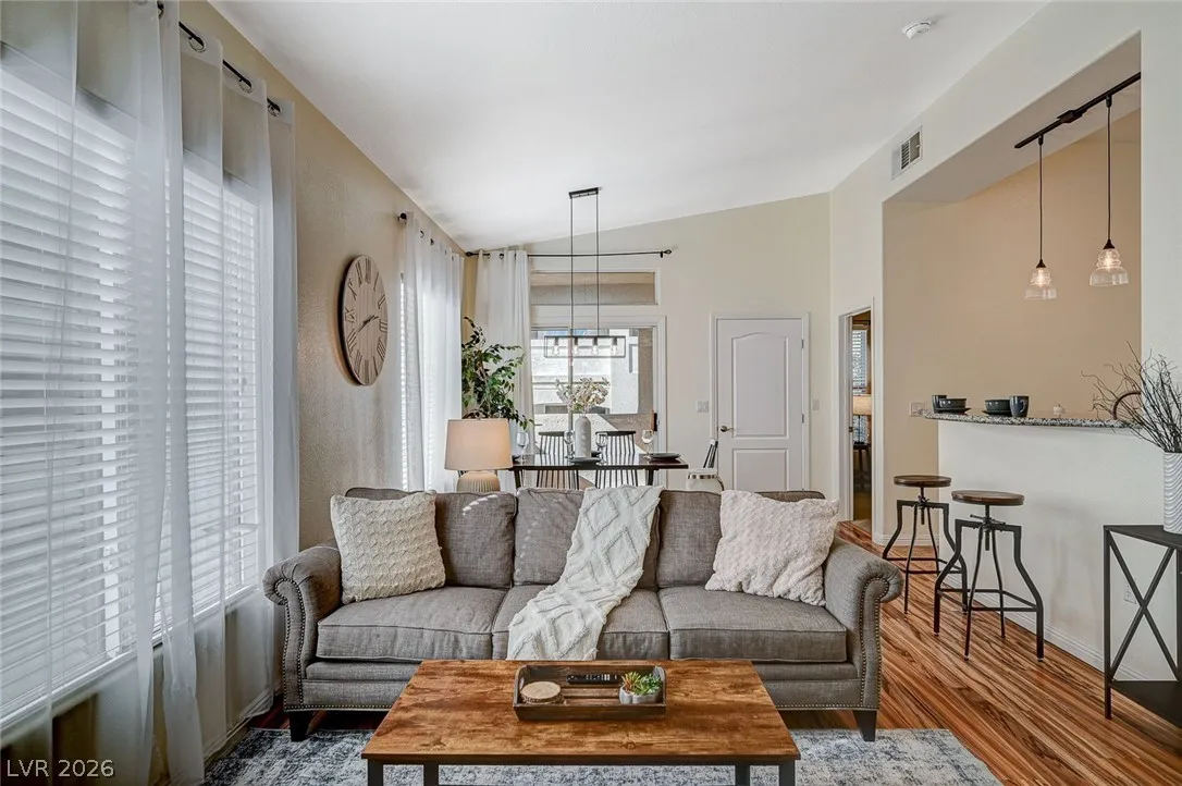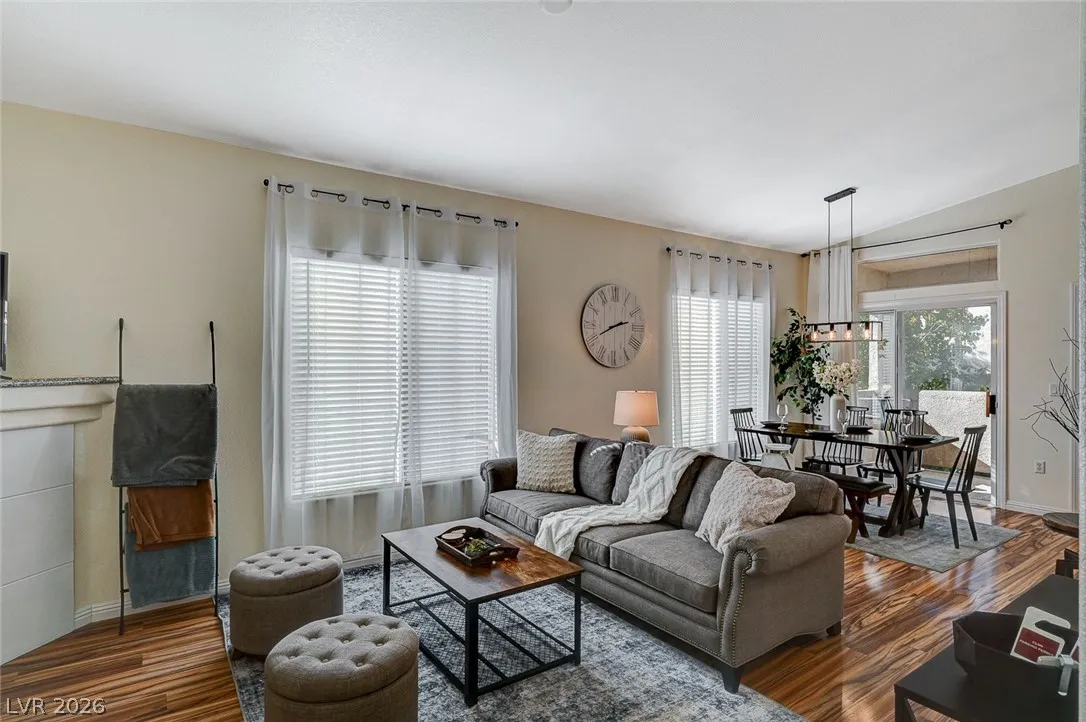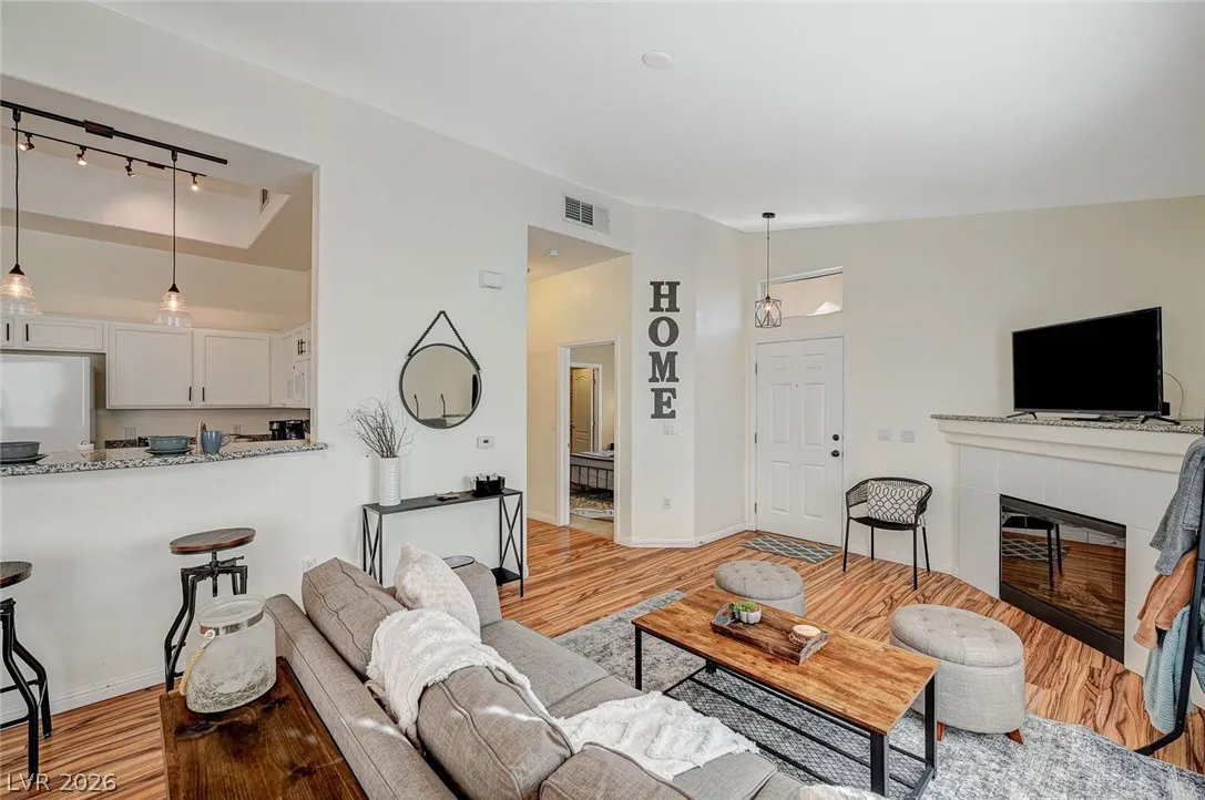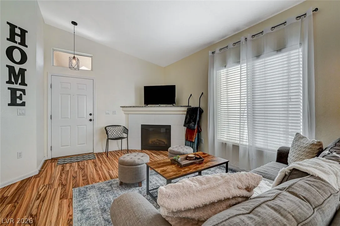 Experience true turnkey living in this fully furnished 2-bedroom condo just minutes from Summerlin. Designed to feel like a model home, this property features a clean, upgraded interior with thoughtful finishes throughout.The living room offers vaulted ceilings, a cozy fireplace, and great natural light, creating an open and inviting space. The kitchen is upgraded with granite countertops and plenty of storage, making it both functional and stylish.