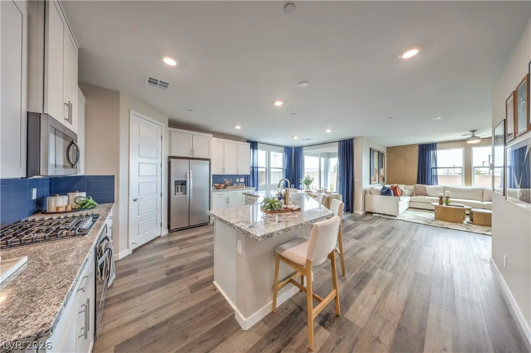 BRAND NEW SINGLE STORY HOME! DR Horton backed by Fortune 500 Company. Shaker cabinets with Quartz slab kitchen and bath counters, Stainless Steel Whirlpool 5 burner cooktop with single oven underneath, microwave and dishwasher, included patio cover and pavers, Smart Home Features, Tankless Hot Water Heater, LVP throughout the common areas. Gated Community located in The Villages at Tule Springs Master Plan. Ask about our incentives.