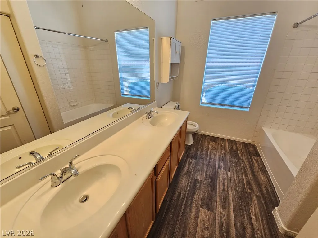 Come see this fantastic Green valley condo conveniently located downstairs with three bedrooms! Gated community with pool and exercise room. Well appointed kitchen with gas stove and good counterspace. Living room has access to patio and features a fireplace. Wood-look laminate flooring in wet areas. Primary bedroom has a ceiling fan and walk in closet. Primary bathroom comes with double sinks and walk in shower. Tenant to verify all information including schools.