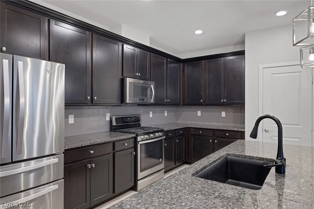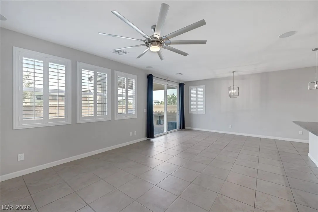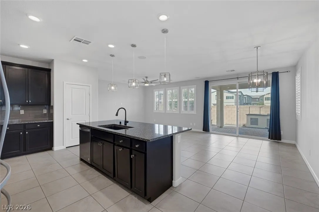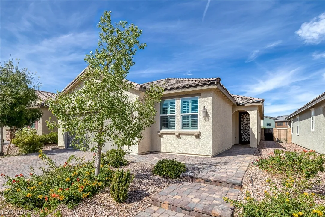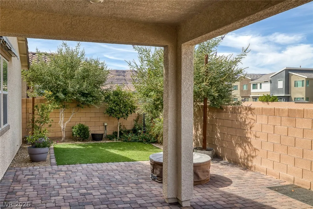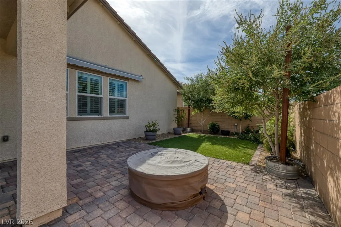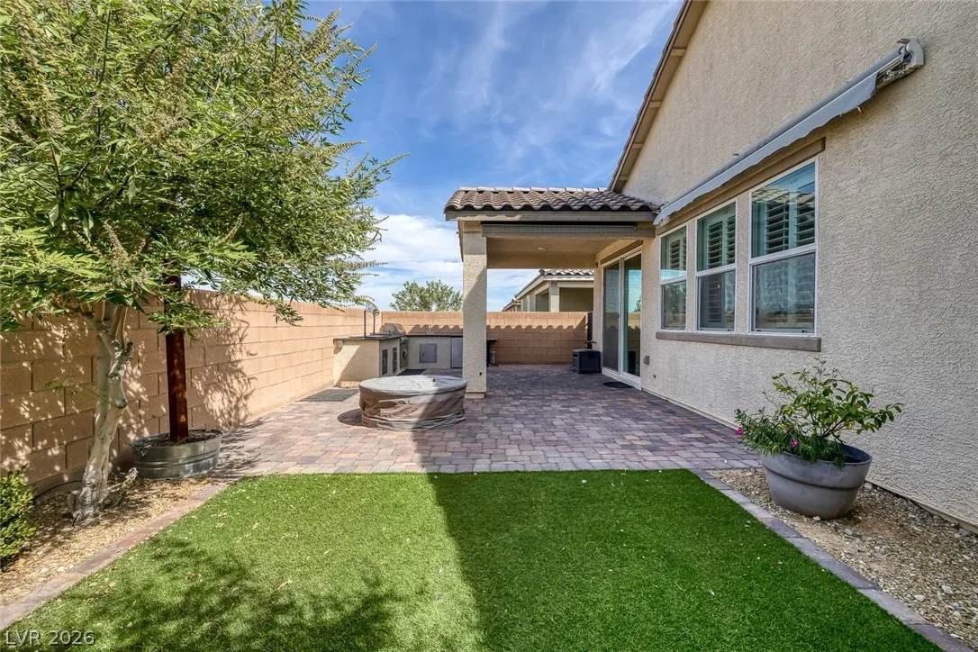 Stunning single story 3 bedroom home, upgraded throughout in gated community. Formal entry leads you into the Great Room style living area. Large living area with ceiling fan/light and very nice size dining area. Gourmet kitchen with granite counters, upgraded stainless steel appliances, microwave, pantry. Upgraded dining light fixture and island pendant lighting. All tile flooring in living area and carpet in bedrooms. Surround sound in great room. Primary bedroom is very spacious, features ceiling fan/light for your secluded private retreat. Custom walk in closet is a stand out feature. Primary bath with dual sinks, upgraded counters and lighting. Oversize walk in shower. Nice size secondary bedrooms with ceiling fans/lights. The back yard is truly a WOW factor with this home. Covered patio, large paver patio, outdoor L shaped kitchen with built in BBQ, sink, mini fridge and The Pit BBQ. Stunning easy care yard with large trees & artificial turf. Shutters throughout home. Much more.