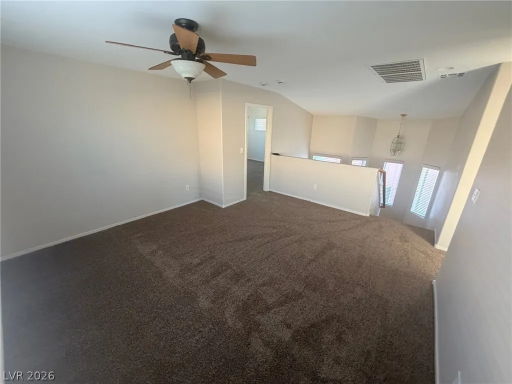 Discover this 3 bedroom/loft home in North Las Vegas. A thoughtfully designed residence featuring 3 bedrooms, 2.5 bathrooms and a spacious loft plus den. The kitchen offers quartz countertops and stainless-steel appliances with a spacious layout. The primary bathroom includes dual sinks and a separate tub and shower. Interior comforts include ceiling fans, NEW paint, and NEW carpet, and the covered patio and courtyard entry extend living outdoors. Low maintenance landscaping including artificial turf in the rear yard. A small shed is also available to store your gardening tools! A two-car garage provides parking and storage. Located close to schools, community park areas and city parks, this home blends practical finishes and convenient location for easy everyday living.