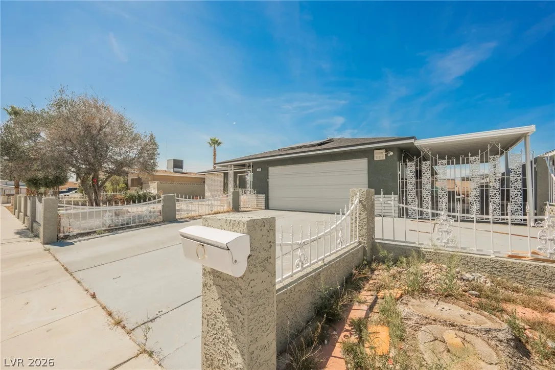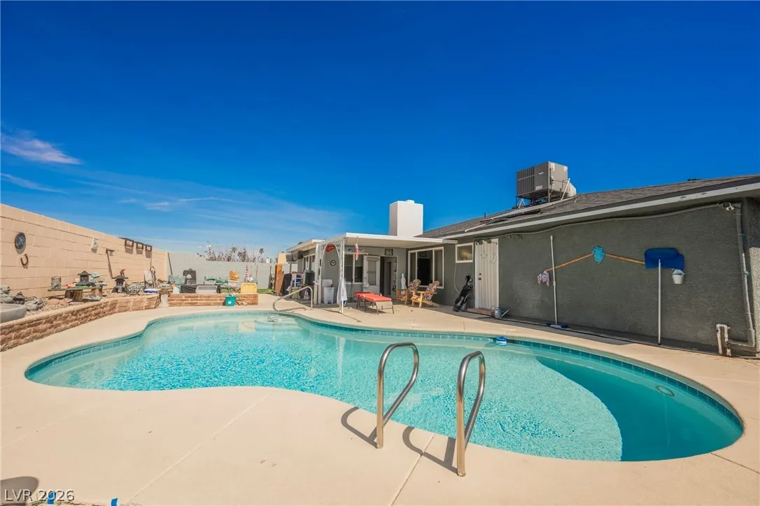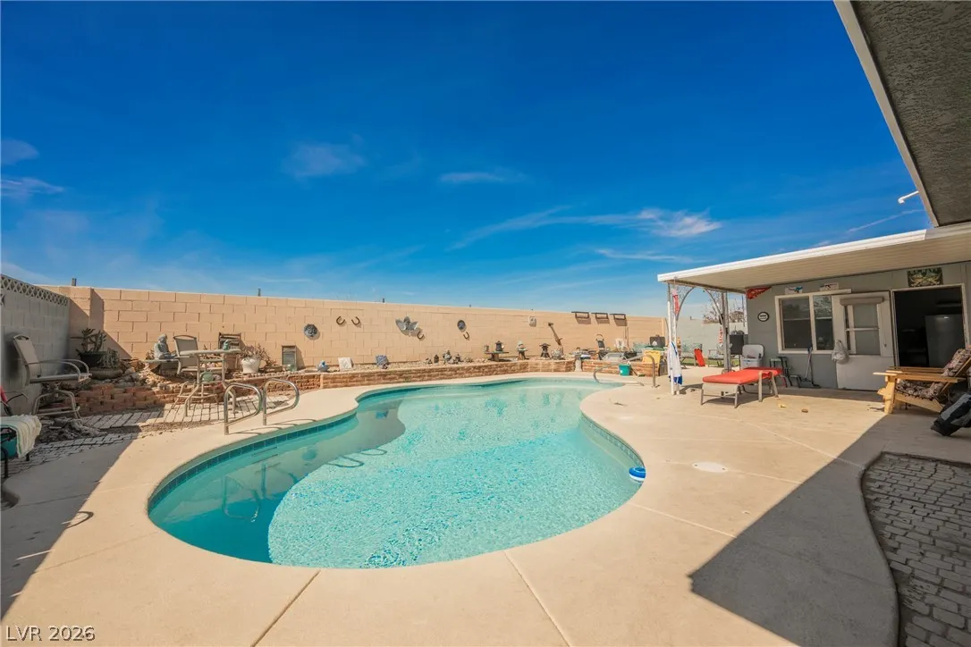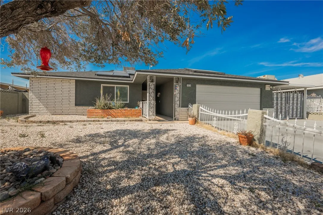 This Charming/Renovated home features 3 bedrooms and 2 bathrooms, over 1600 sqft of living space with no HOA. Oversized Living Room and Dining room with a two-way stone fireplace where you can enjoy cozy evenings. With tile and high luxury laminate flooring through out makes this home a breeze to keep clean. The primary suite offers a relaxing retreat? with double closets. Spacious backyard with your pool and covered patio perfect for entertaining, gardening, or adding your personal touch. Enjoy major energy savings with leased solar panels. 2 car garage which includes a dog bath and extra parking for all your toys or guests under the car port. Owner will provide pool service. New roof installed in 1/2025 and the A/C is 4 years old. A rare find offering flexibility and convenience.