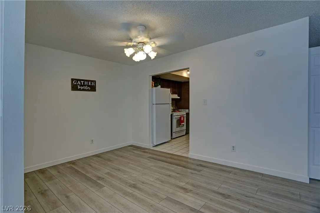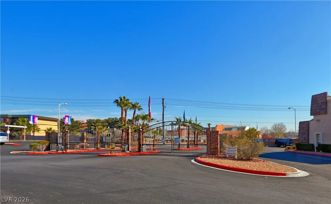 Spacious 1100sf 2nd Floor Condo. Features two large bedrooms and one very large bathroom, new carpet in the bedrooms, freshly painted! Lovely tile and wood laminate floors throughout! Nice gated community that is close to UNLV, the Fabulous Las Vegas Strip and great shopping!