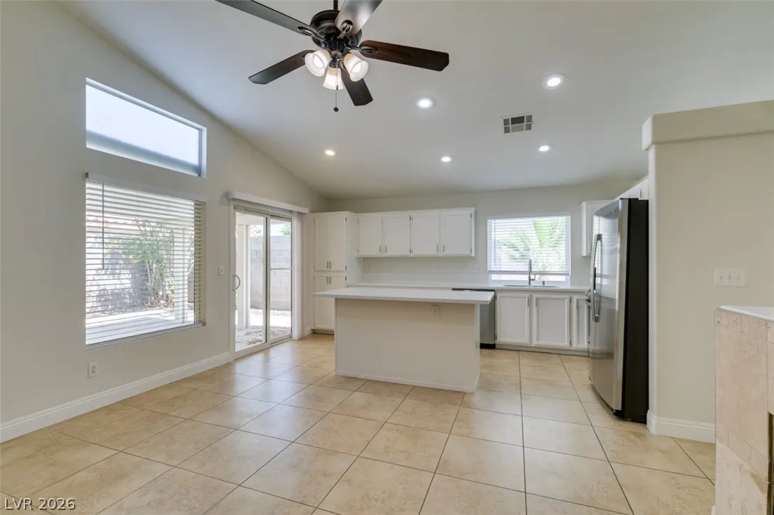Freshly renovated single-story home with a bright, open layout and modern upgrades throughout. Enjoy new LVP flooring, fresh interior paint, and updated kitchen counters paired with stainless steel appliances. The spacious living areas feature vaulted ceilings, abundant natural light, and a functional flow ideal for everyday living. The kitchen offers ample cabinet space and a breakfast bar that opens to the main living area. Generously sized bedrooms and updated bathrooms provide comfort and convenience. Step outside to a private backyard with a covered patio, perfect for relaxing or entertaining. Low-maintenance desert landscaping in both the front and rear adds to the ease of living. Conveniently located near shopping, dining, and freeway access. Move-in ready and well maintained.