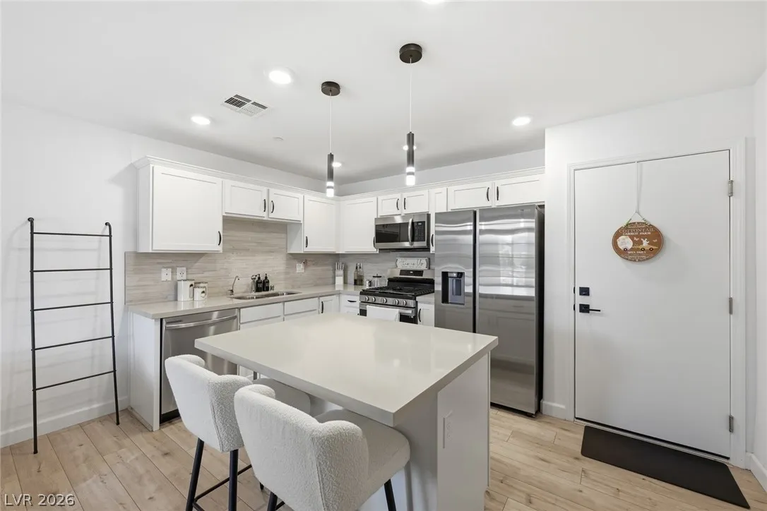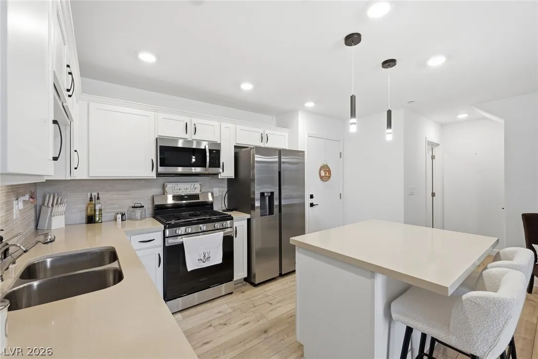 Modern design meets effortless living in this 2022-built residence that remains in pristine condition & offered partially furnished. The heart of the home is a stylish kitchen appointed with quartz countertops, contemporary backsplash, SS appliances, glass-front pantry, & sleek modern cabinetry. Continuous upgraded flooring throughout creates a polished, model-like feel across the entire home.
